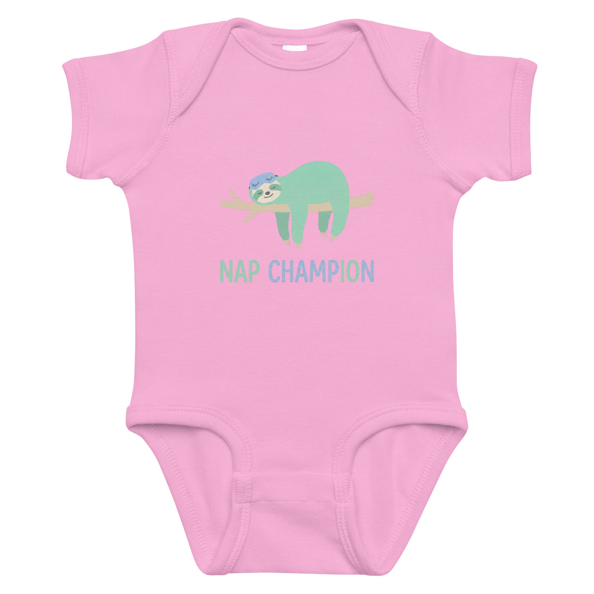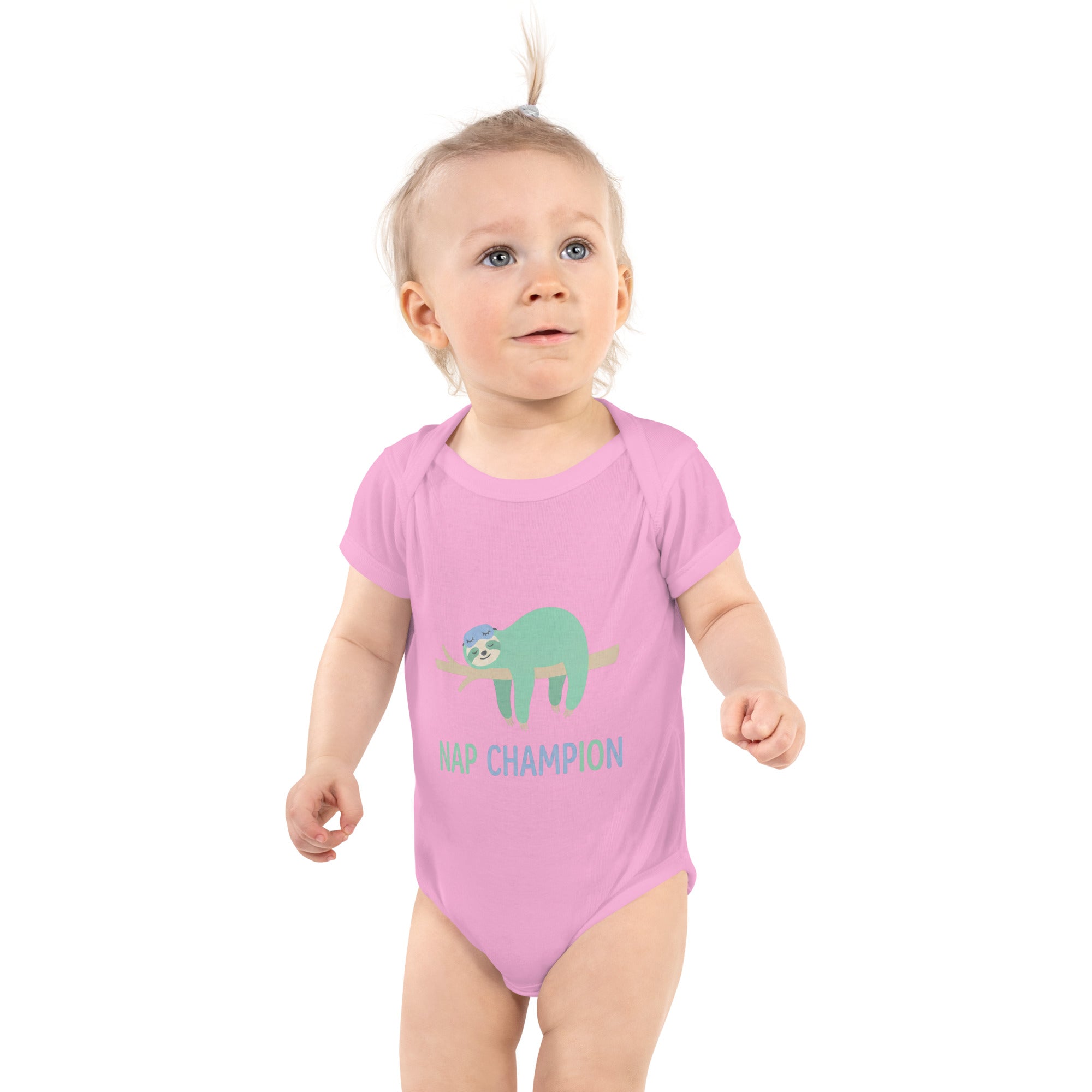 • Pastel Sloth Nap Champion Baby Short Sleeve Bodysuit