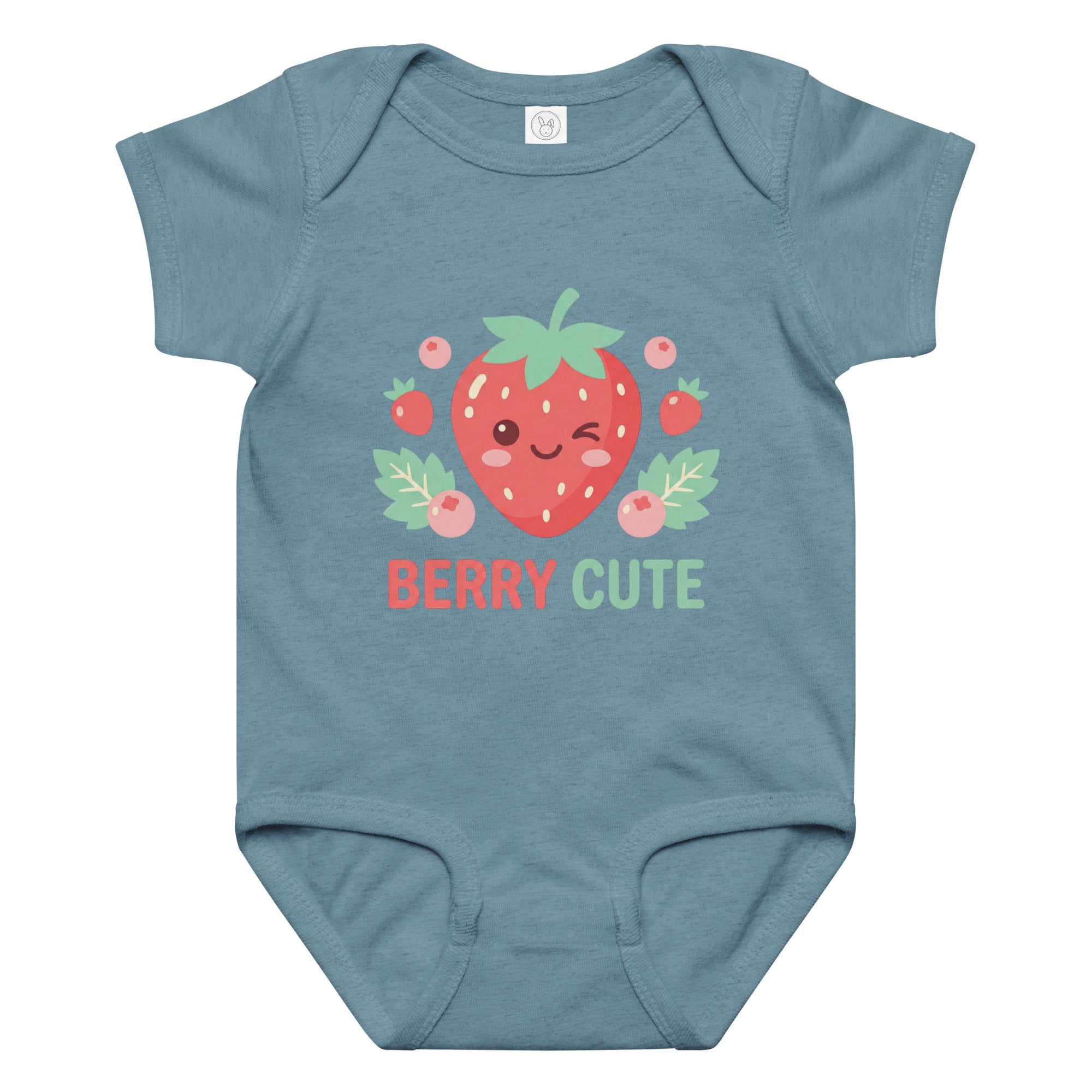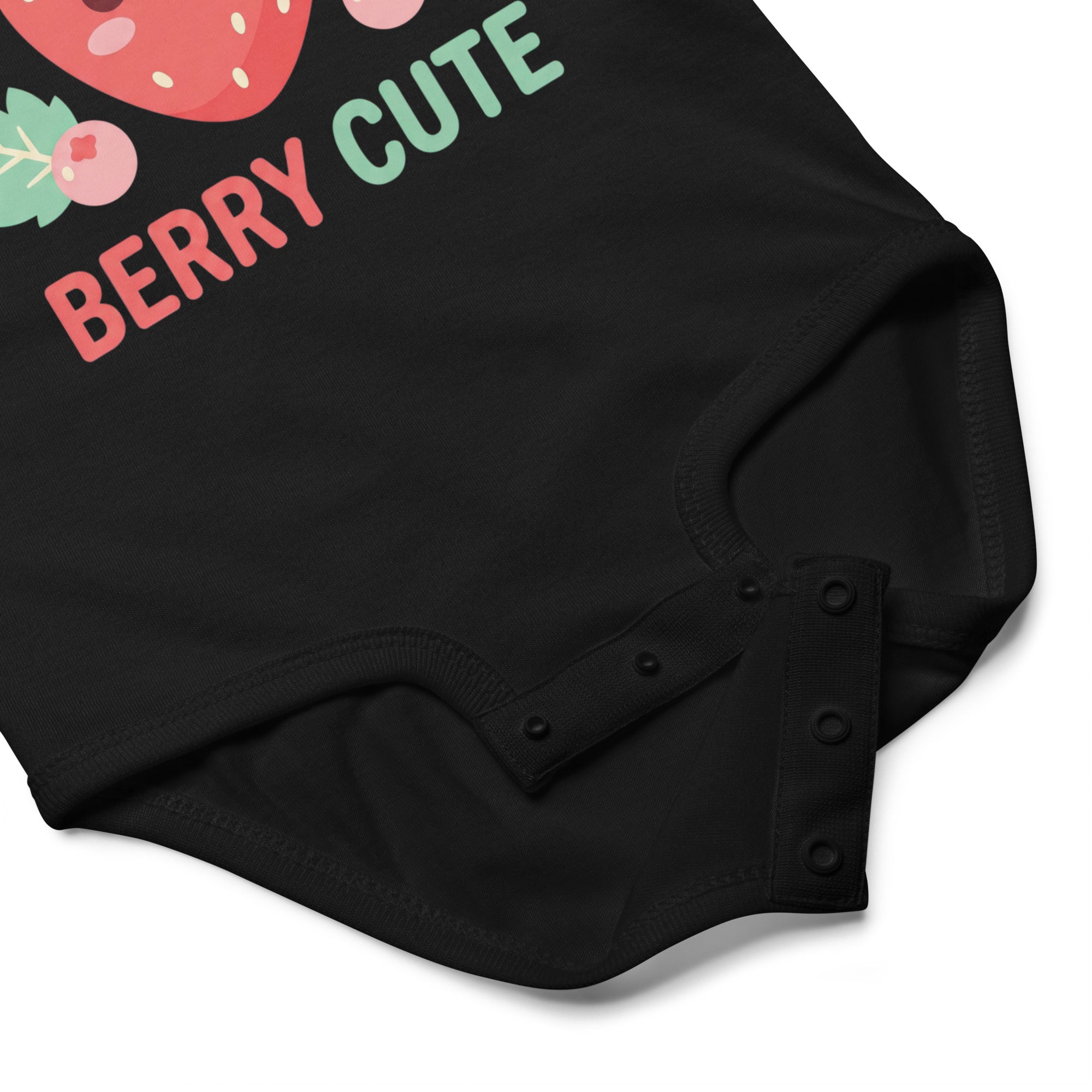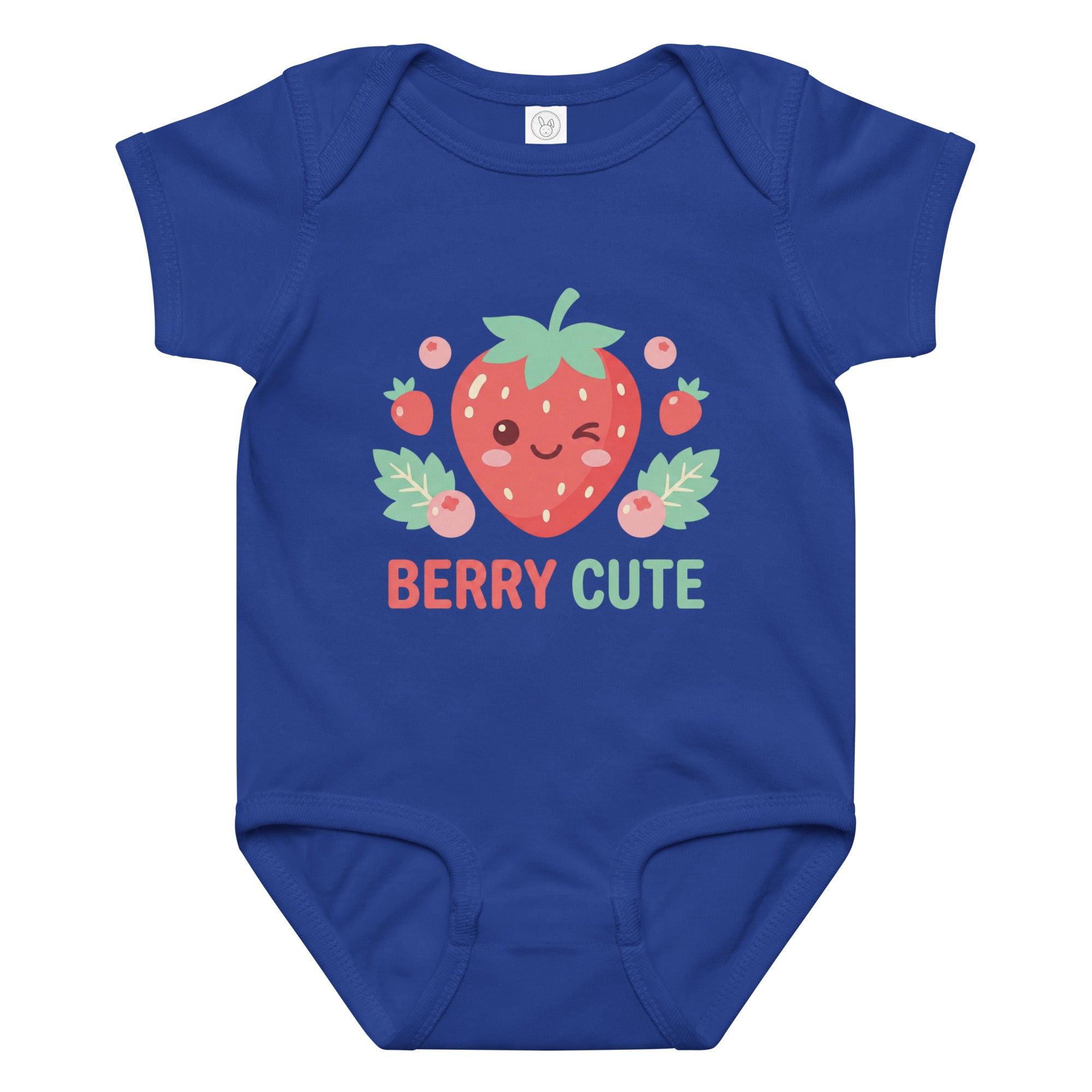 Celebrate sweetness with this adorable baby jersey bodysuit featuring a cheerful, winking strawberry illustration surrounded by smaller berries and delicate leaves. Below the vibrant graphic, the playful phrase 'BERRY CUTE' is printed in coordinating red and green hues, adding an extra touch of charm. This comfortable garment is perfect for everyday wear, offering a soft feel for sensitive skin and easy movement for your little one. Designed for ultimate comfort and enduring style, this Baby Jersey Bodysuit is a delightful addition to any baby's wardrobe.