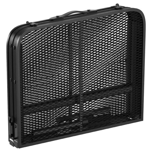 Portable, sturdy camping table with an aluminum-alloy frame and iron mesh tabletop built for outdoor use. Folds flat for easy transport, offers dual-height adjustment (16.15–25.9 in), and supports up to 88 lbs — ideal for camping, BBQs, picnics, RVs, and backyard use.