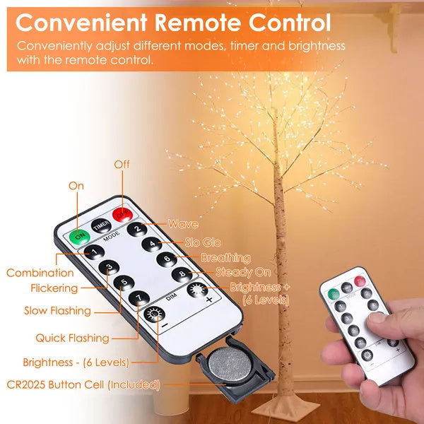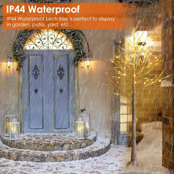 Bring warm, elegant ambiance to weddings, holiday displays, and home décor with this artificial white birch twig tree. Wrapped branches with copper LED wire produce a realistic look while 8 lighting modes, 6-hour timer, and remote control let you customize mood and brightness. IP44 waterproof rating and a long 9.84 ft (3 m) power cable make indoor or protected outdoor placement easy and worry-free.