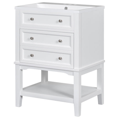 24" Bathroom Vanity With Sink – Solid Wood Frame, White
