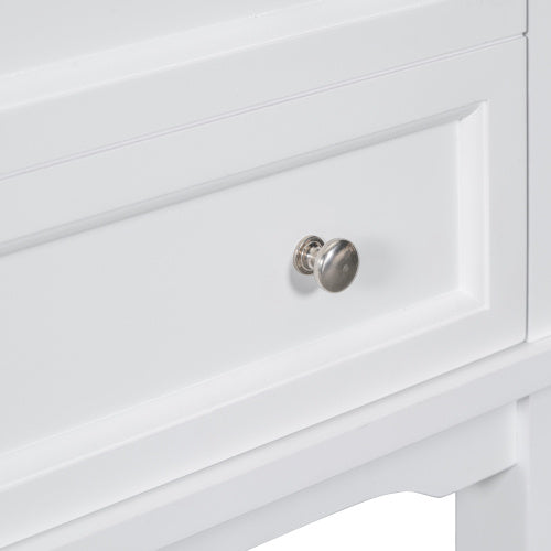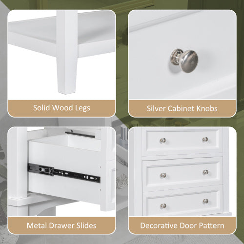 - Metal drawer slides and zinc-alloy silver knobs for smooth operation and a premium look.