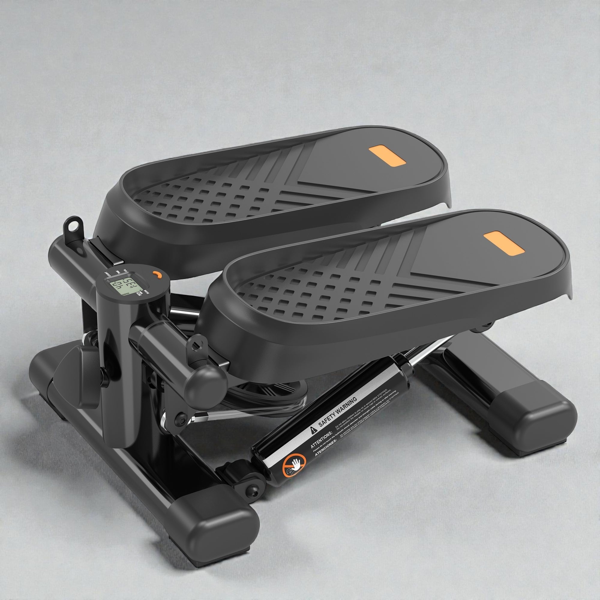 Coocosh Compact Dual Action Stepper with Digital Display, Sturdy Plastic and Steel, Black, 22 x 15 x 12 inches, Close-up view highlighting its textured foot pedals and adjustable settings for a versatile workout experience.