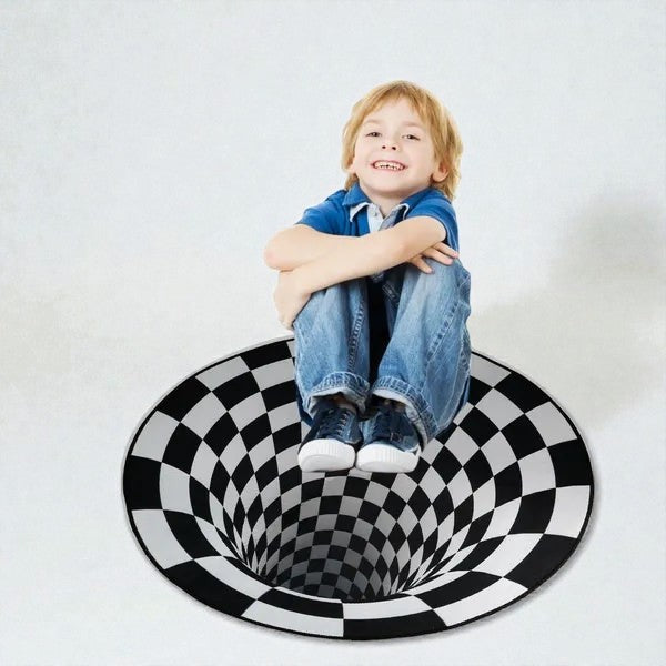 Add a captivating visual element to your space with this 3D checkered round area mat. The unique black-and-white design not only serves as a striking focal point but also provides comfort and safety, making it ideal for living rooms, entryways, and more.