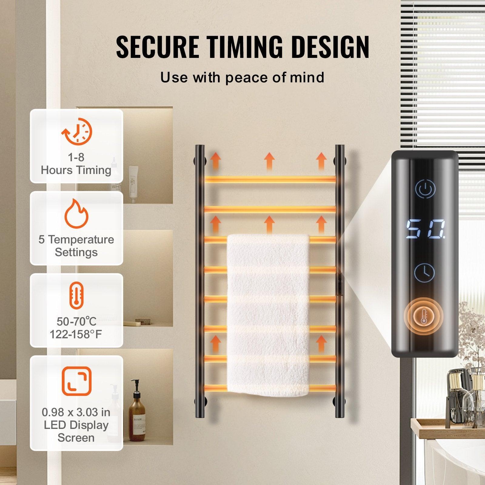 Coocosh 8 Bars Towel Warmer Rack — Wall-Mounted Heated Towel Rack (Black)