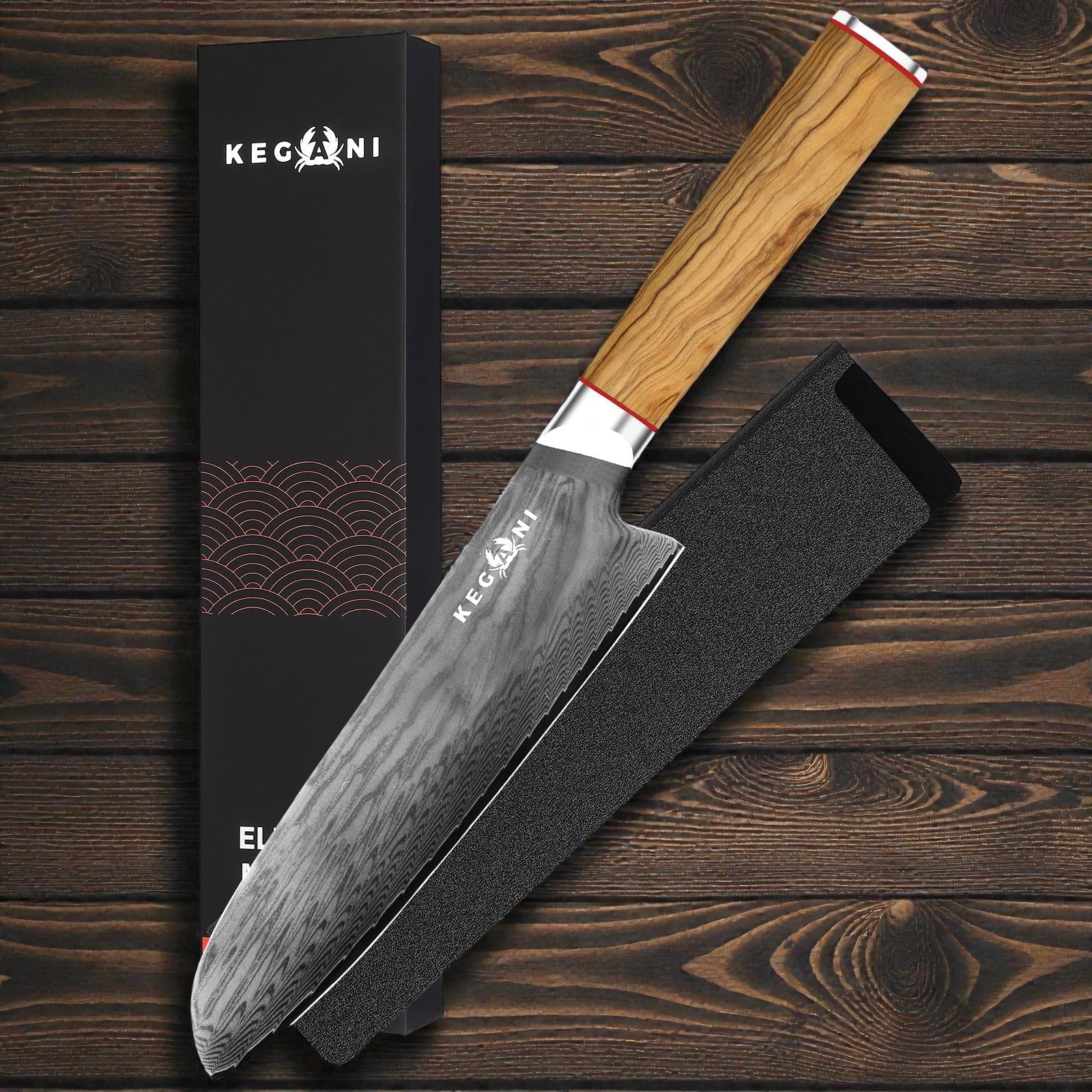 Elevate your culinary artistry with the Kegani 8-Inch Kiritsuke Japanese Chef Knife, engineered for unparalleled precision and effortless slicing. Its striking 67-layer Damascus steel blade, complemented by a finely crafted D-shaped wood handle, offers both exceptional performance and a sophisticated aesthetic for your kitchen.