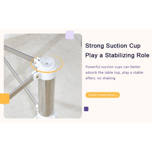 Ensure all metal screw locks and plastic fasteners are secured and suction cups fully engaged before placing items on the table. Adjust feet to level the frame and avoid sudden lateral forces. Color and finish may vary slightly due to lighting and monitor differences.