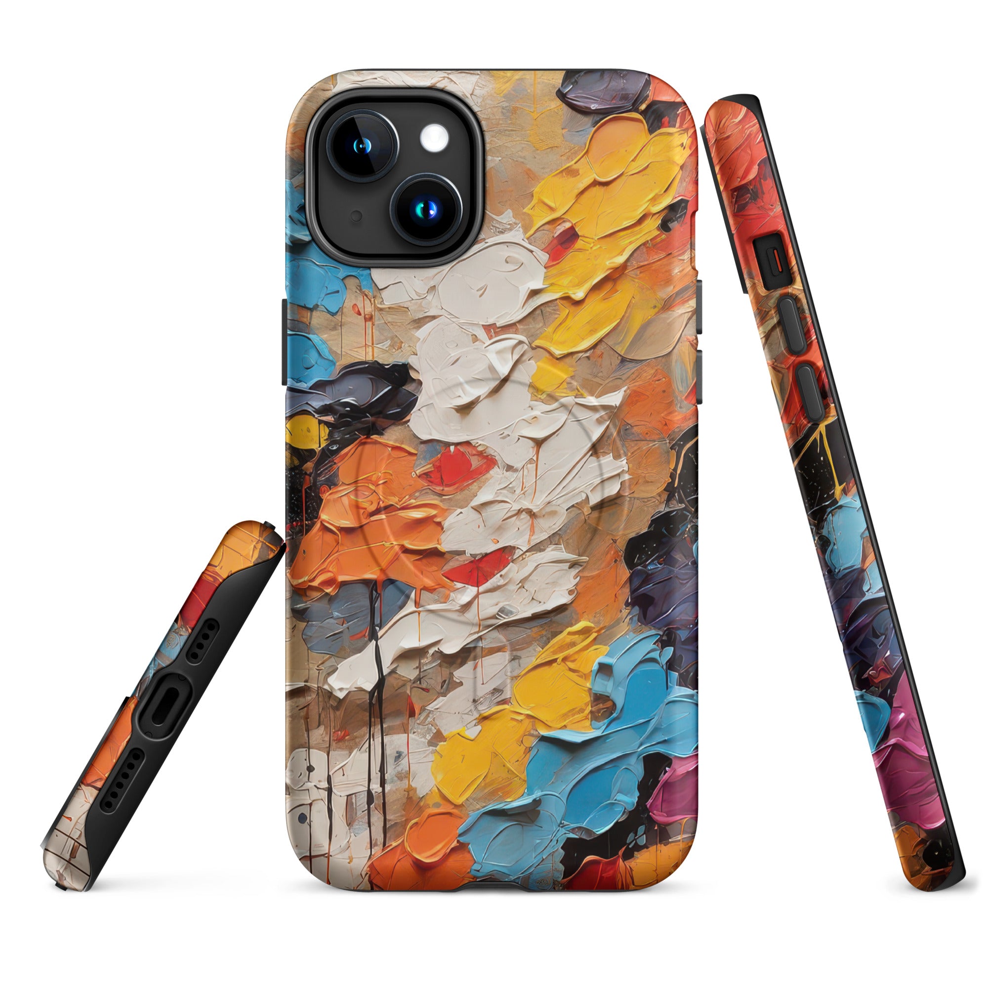 Immerse yourself in a world of vivid artistic expression with our ''Vibrant Impasto Bloom'' MagSafe® Tough Case. This captivating design showcases thick, dynamic brushstrokes in a brilliant spectrum of yellow, orange, red, blue, purple, and white, creating a bold, textured masterpiece. Ideal for the art enthusiast who demands both exceptional style and robust protection, this case feels premium in hand. Experience superior impact resistance and magnetic convenience with this MagSafe® Tough Case for iPhone®.