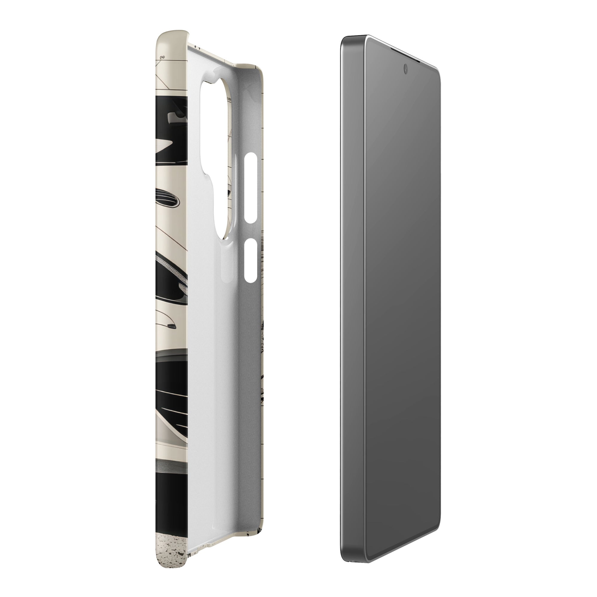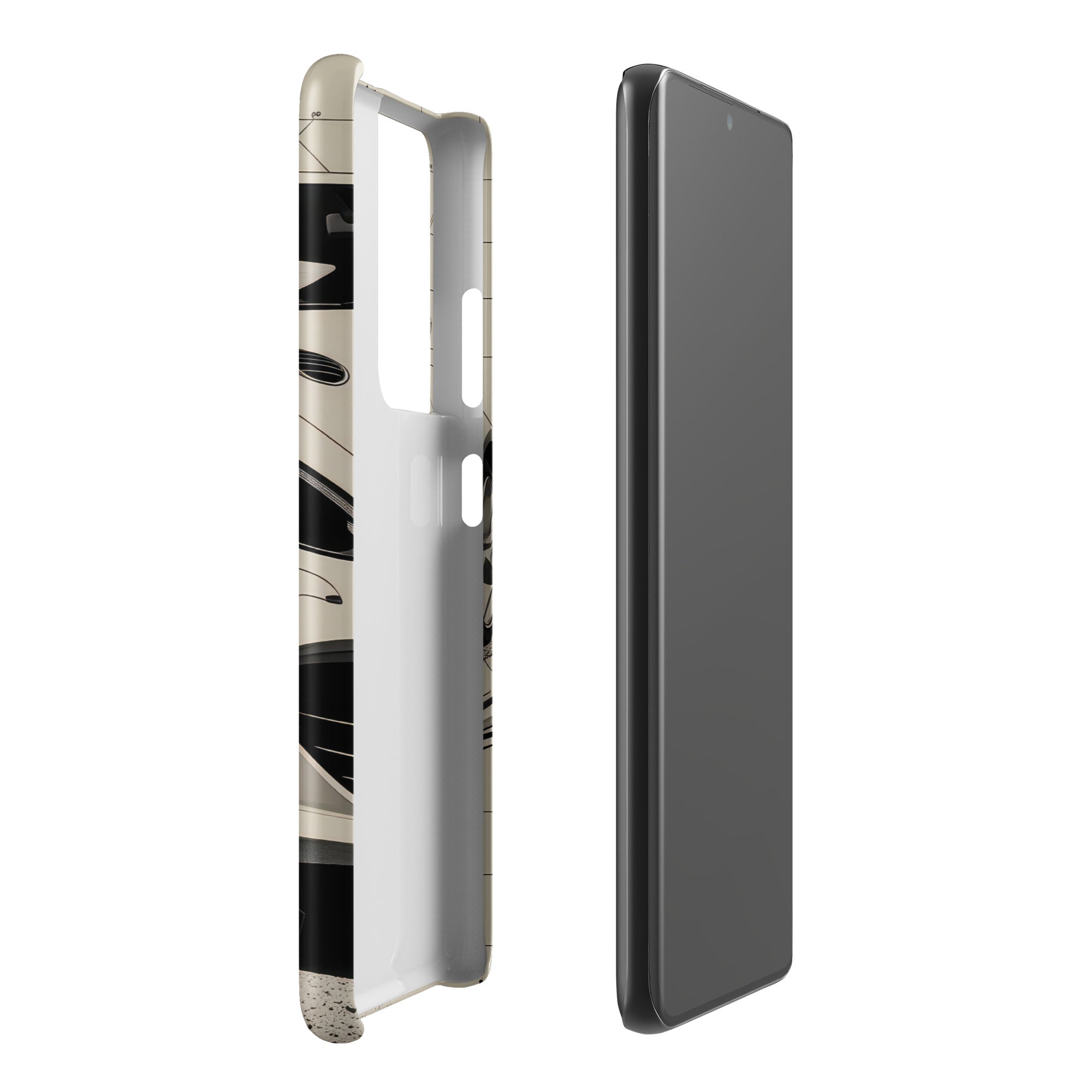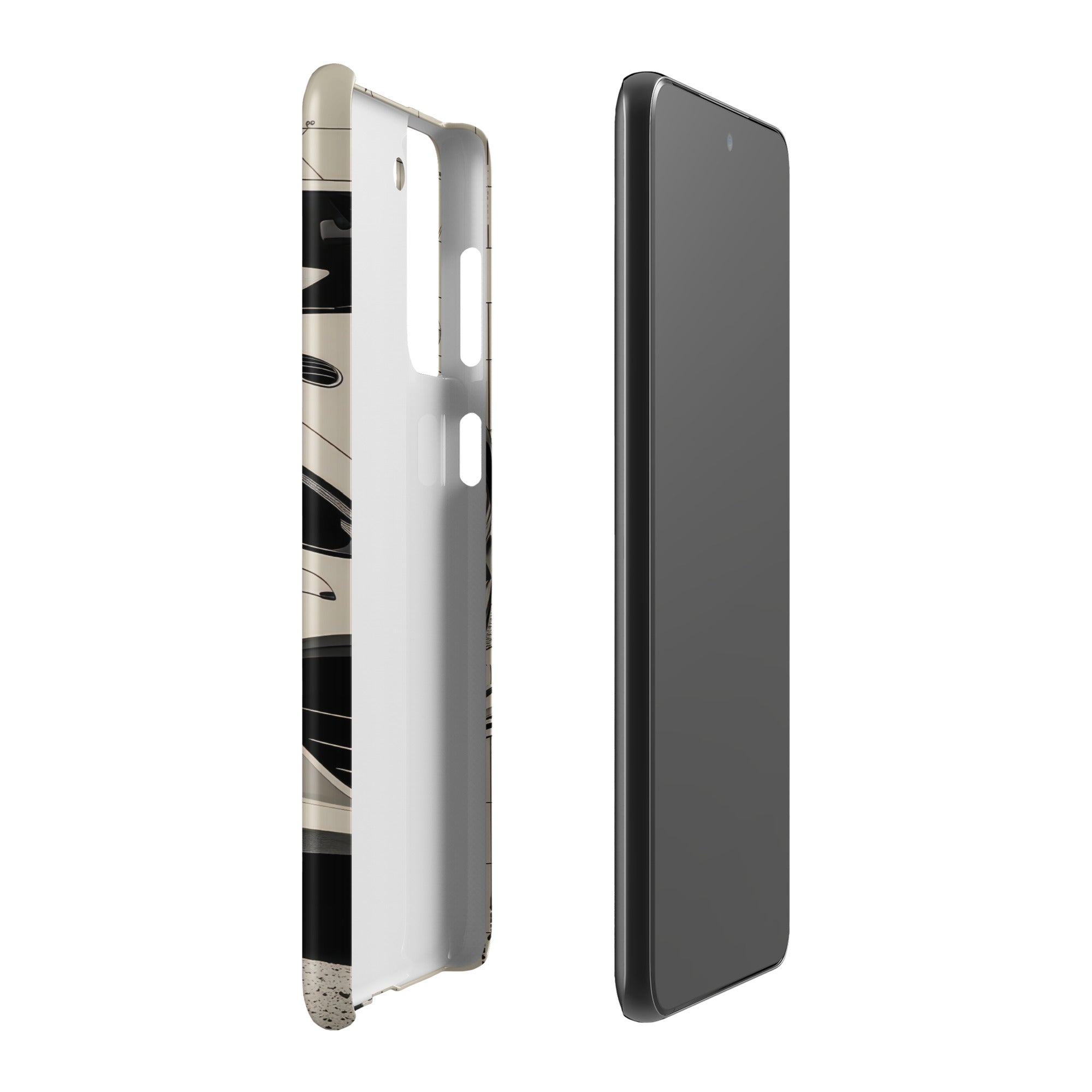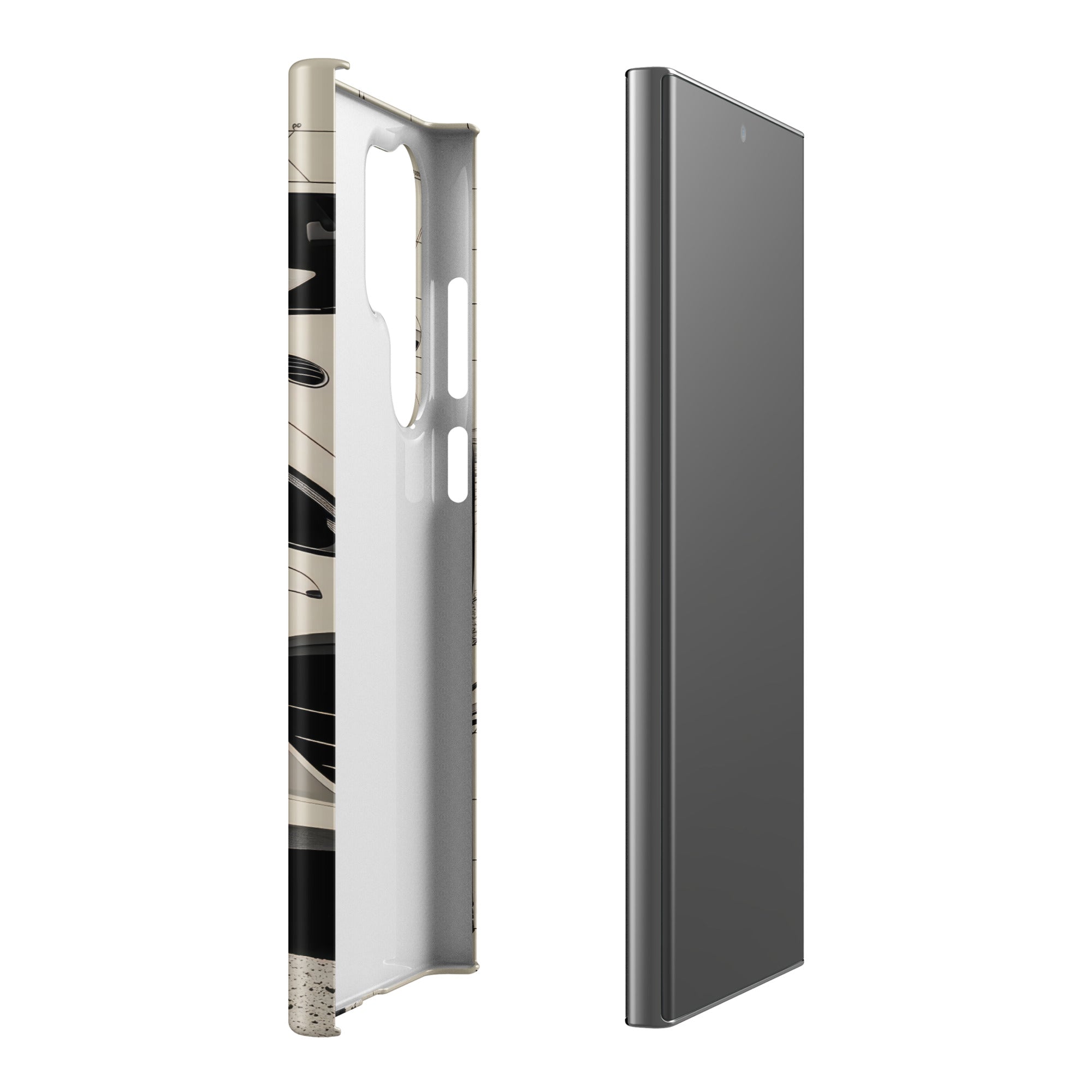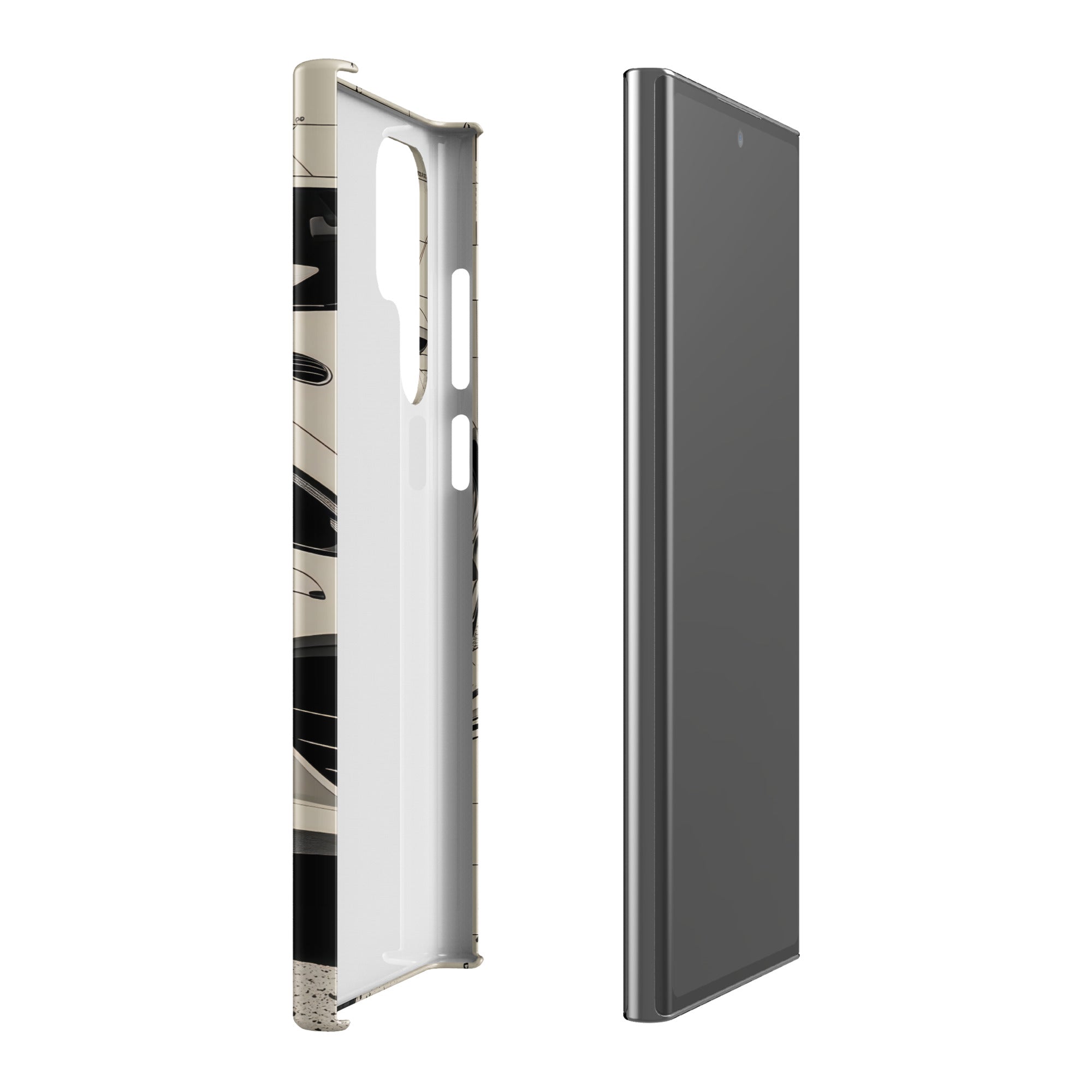 This snap case showcases a modern white coupe slicing through blueprint-inspired lines and crackled road texture. The slim, lightweight shell adds a sleek layer of coverage while keeping your Samsung feeling pocket ready. It's perfect for everyday errands, office days, and weekend drives. Enjoy streamlined everyday protection with this Snap Case for Samsung®.