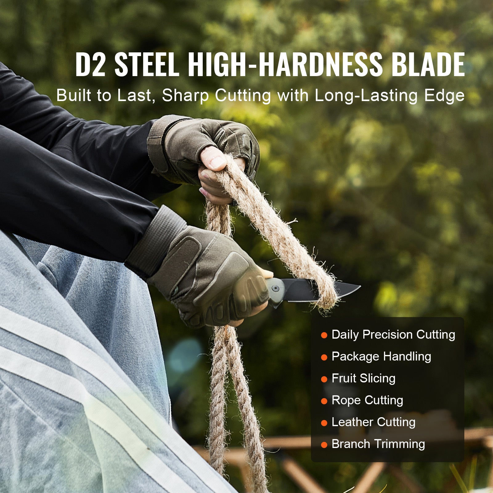 Compact, tough, and ready for everyday carry, this Vevor folding pocket knife pairs a high-hardness D2 steel blade with a waterproof, anti-slip G10 handle and a secure pocket clip. Designed for fast one-handed opening and precise cutting, it’s ideal for EDC tasks, camping, fishing, and light outdoor work.