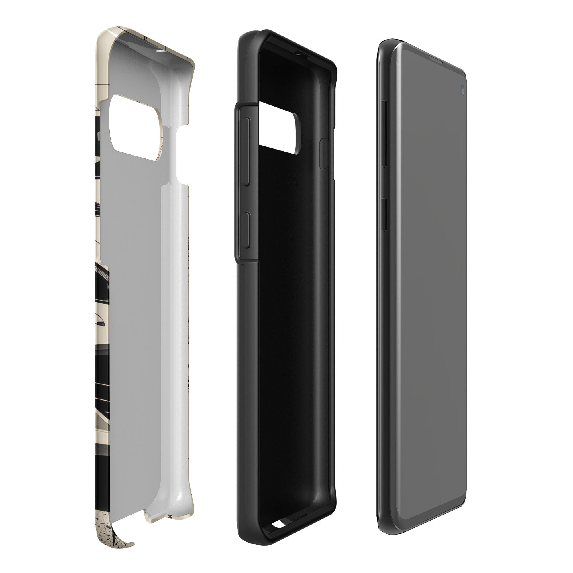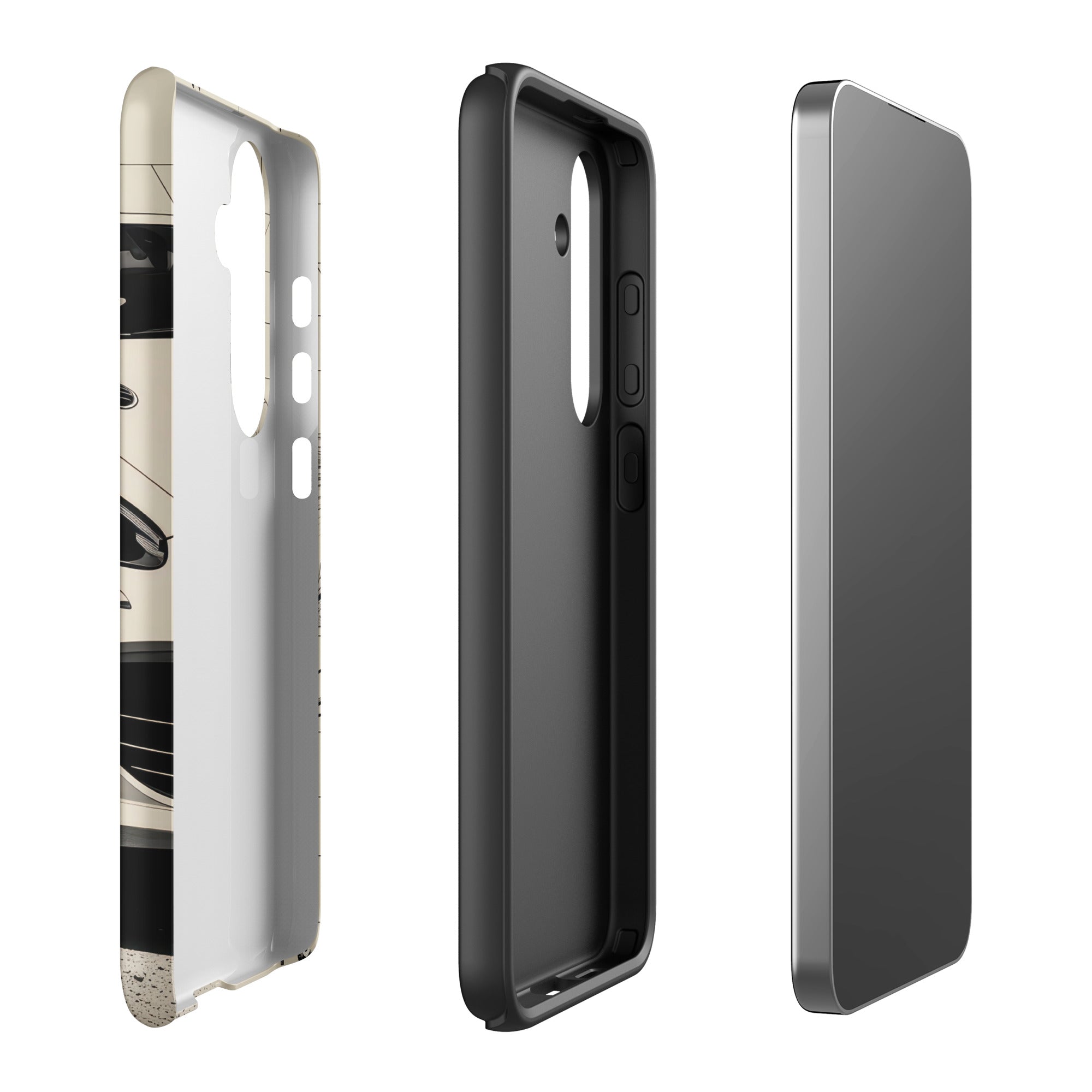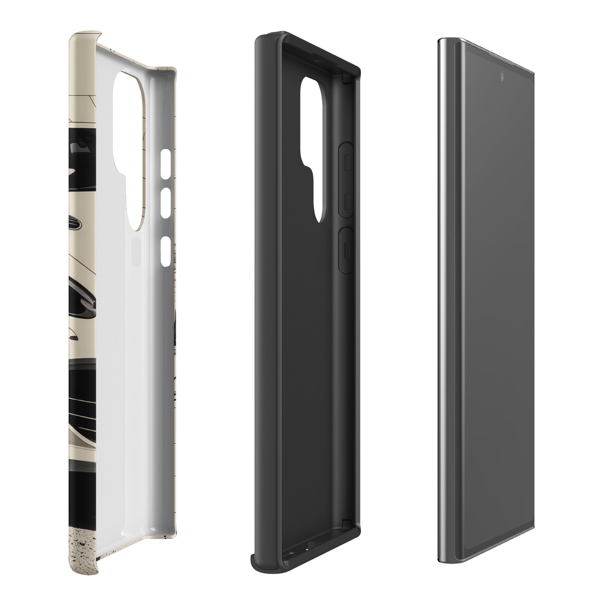 A dynamic white coupe and technical grid lines turn your Samsung into a moving blueprint sketch. The tough dual-layer shell adds a smooth, substantial feel while still fitting easily into pockets and bags. It's ideal for busy days, travel, and late-night scrolling when you want more peace of mind. Enjoy durable dual-layer protection with this Tough Case for Samsung®.