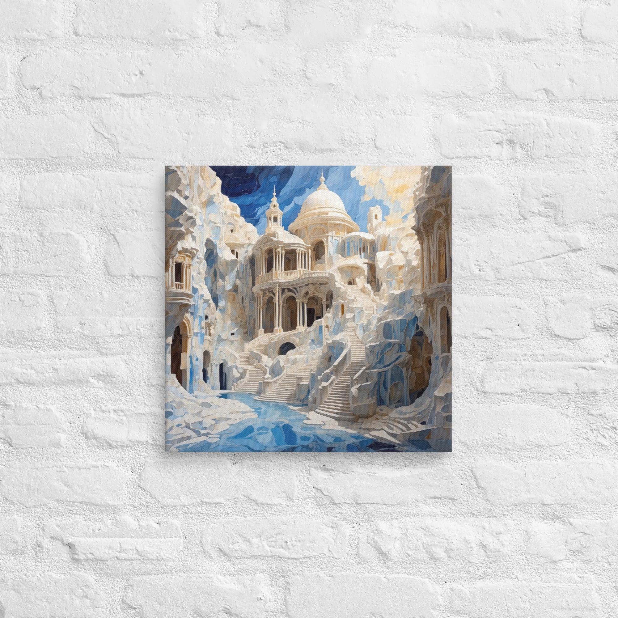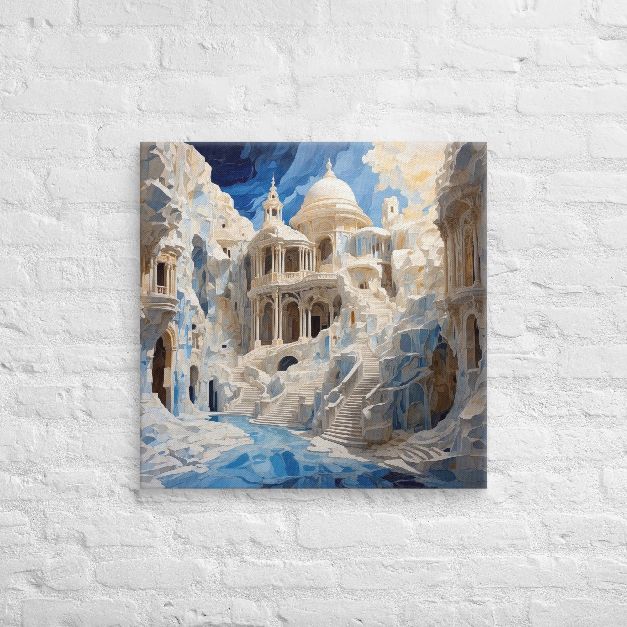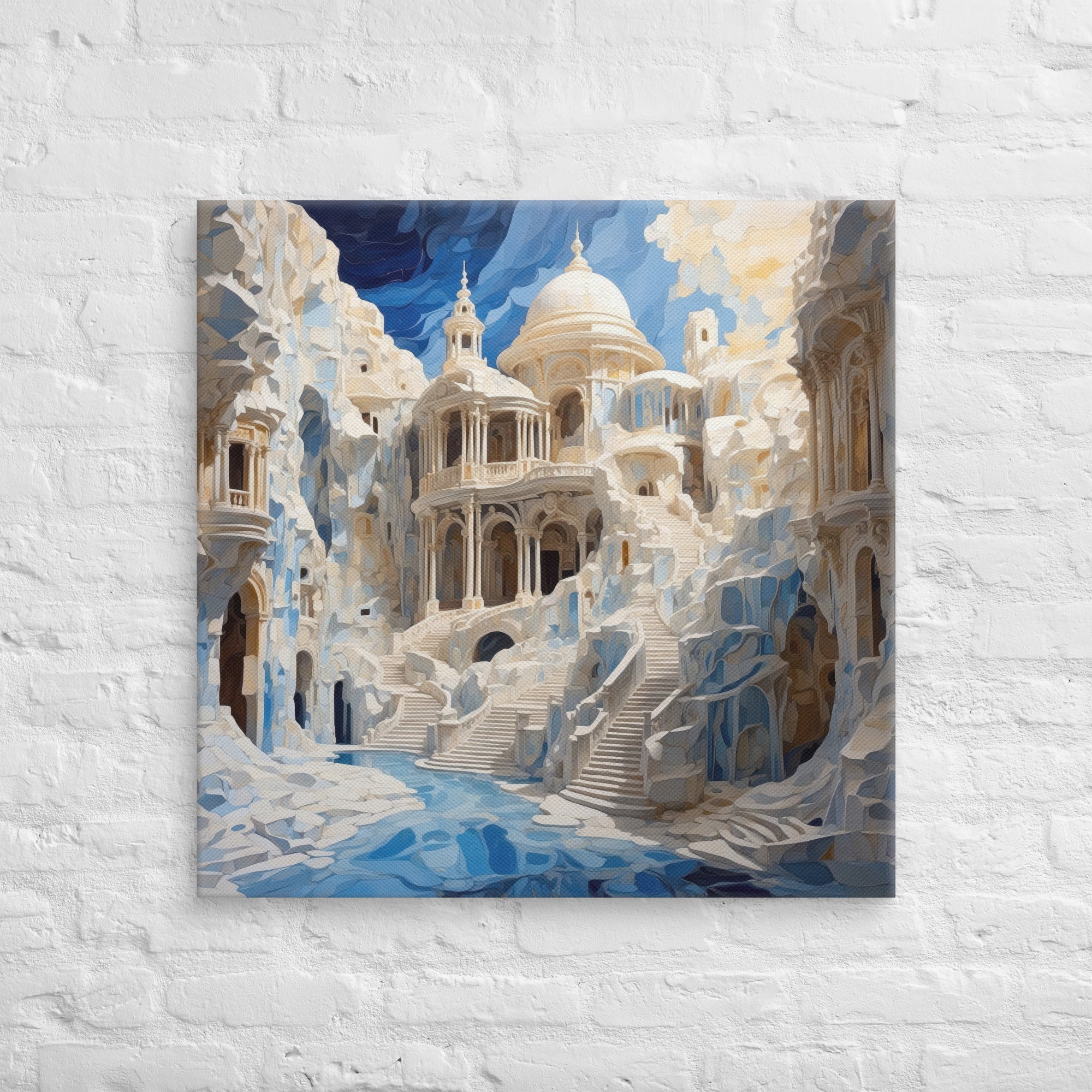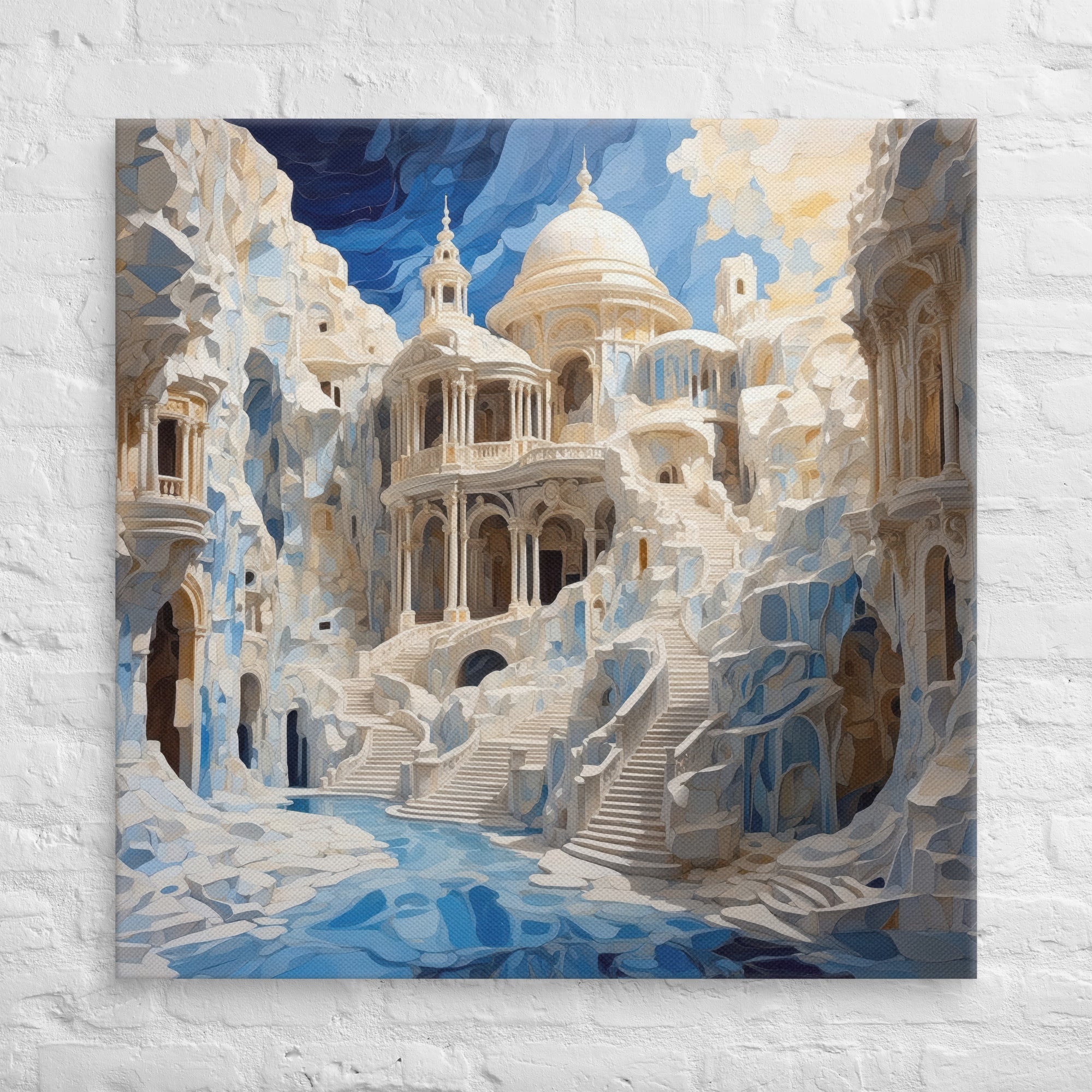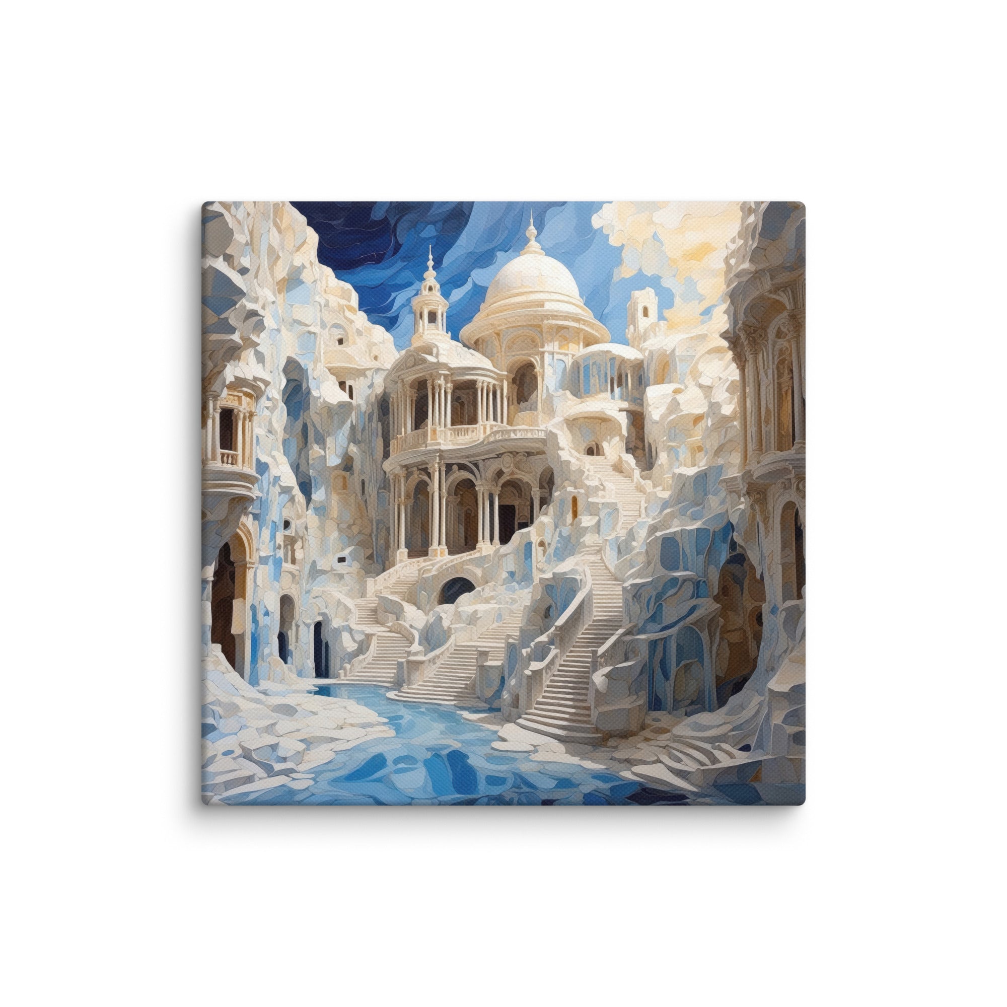 This breathtaking canvas captures an ethereal marble palace bathed in shades of cream, ivory, and soft blue. With its intricate domes, arches, and staircases, it evokes a dreamlike serenity and grandeur, ideal for elegant and timeless interior spaces.