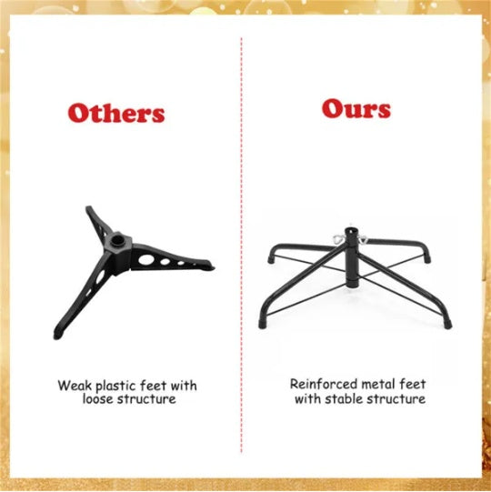Assemble on a flat, stable surface. Attach the foldable metal base and ensure the protective plastic pad is in place before standing the tree upright. Insert each section into the next, then unfold and spread branches starting from the bottom layer and working upward to create a full look. Gently fluff and shape branches for best appearance. Place the tree in a corner or narrow area for a space-saving display. Avoid placing the tree near open flames or excessive heat sources.