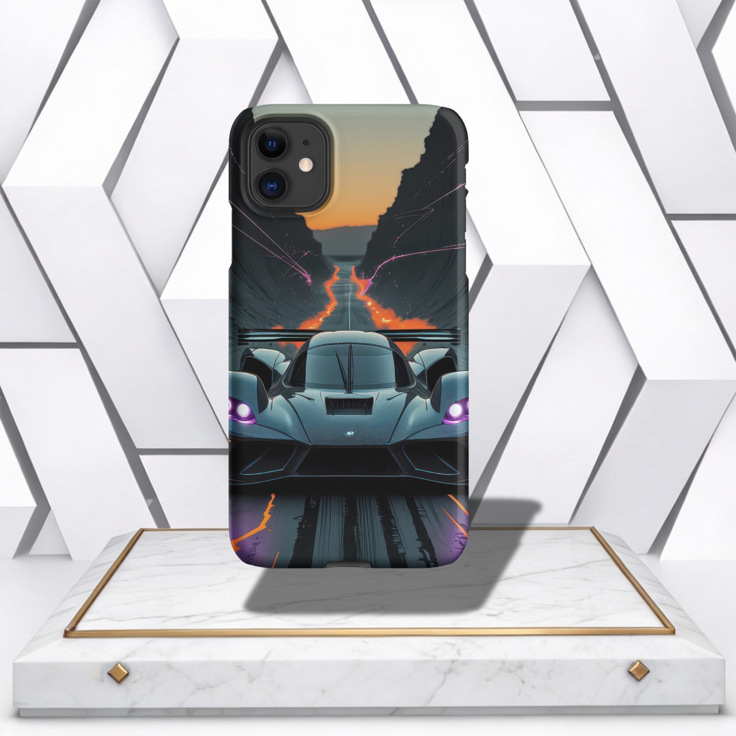 Transform your iPhone® into a piece of art with this striking Graphic Snap Case featuring a captivating racer design. The vibrant colors and dynamic lines evoke a sense of speed and adventure, making it the perfect accessory for motorsport enthusiasts and style-conscious individuals alike.