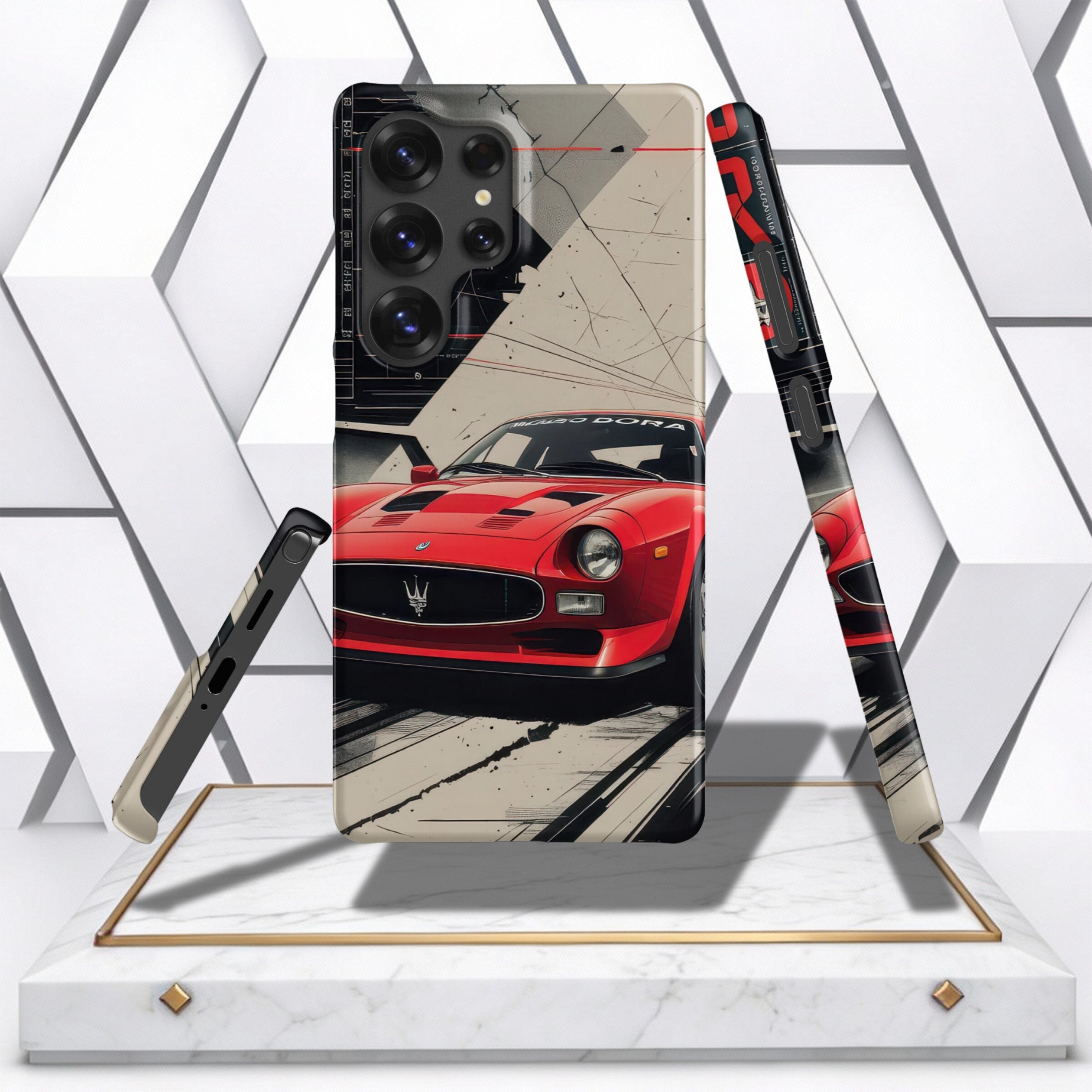 Transform your Samsung® device with this eye-catching snap case featuring a dynamic graphic of a classic red sports car. Its vibrant design not only showcases retro elegance but also provides a subtle yet powerful statement of style.