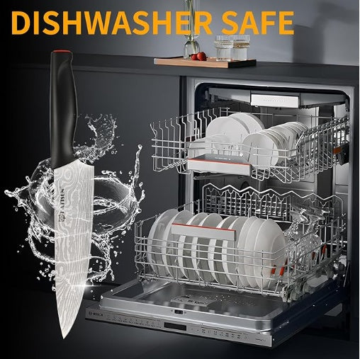• Easy-to-clean knives are dishwasher safe.