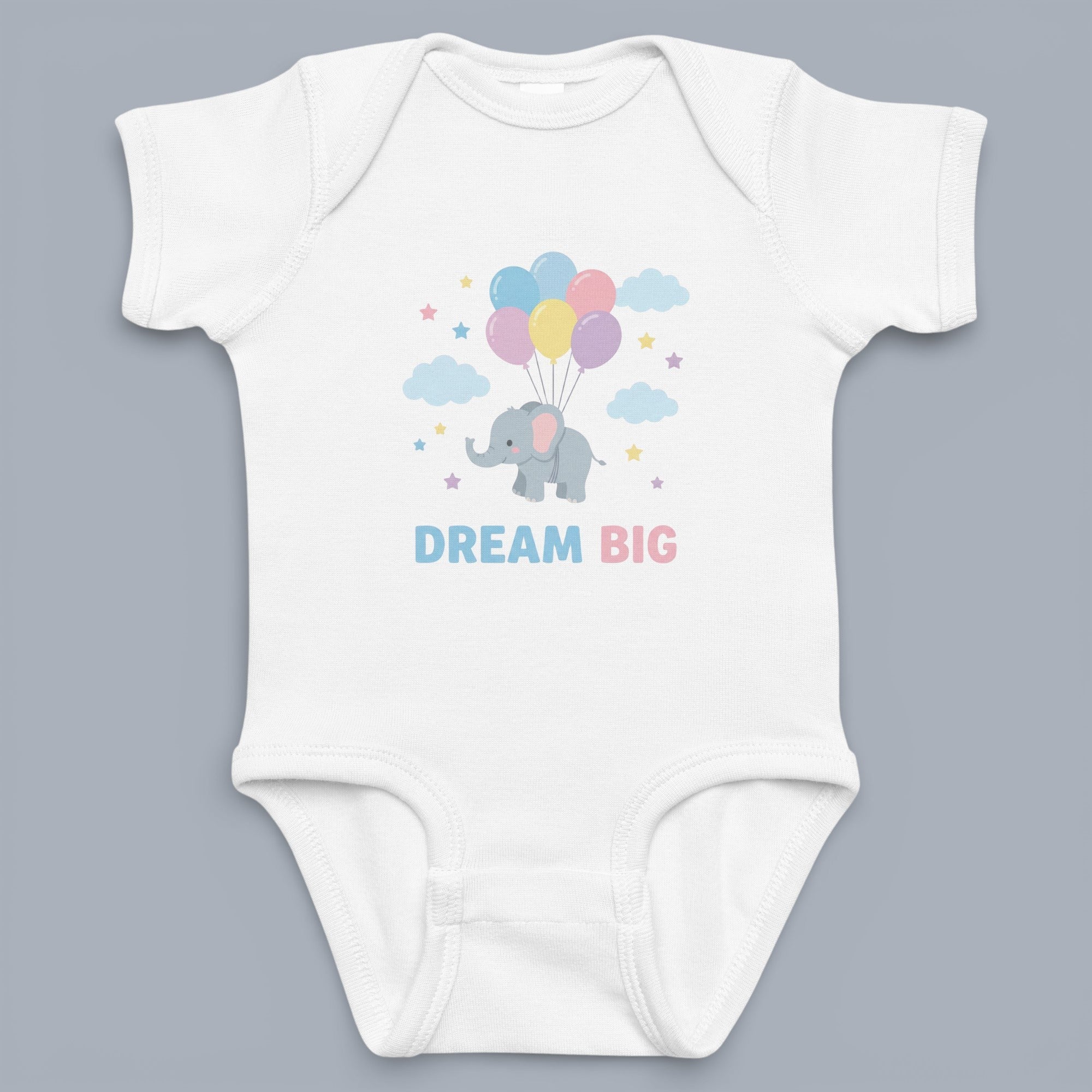 - Whimsical "Dream Big" typography set against a backdrop of stars and clouds