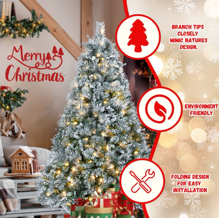 Made from durable materials designed for long-lasting seasonal use. Supplier materials reference weather resistance and anti-crush properties; follow basic holiday safety — keep away from open flames and high-heat sources and do not overload branches with heavy ornaments. If using electrical lights, use lights rated for indoor/outdoor use as required and follow manufacturer instructions.