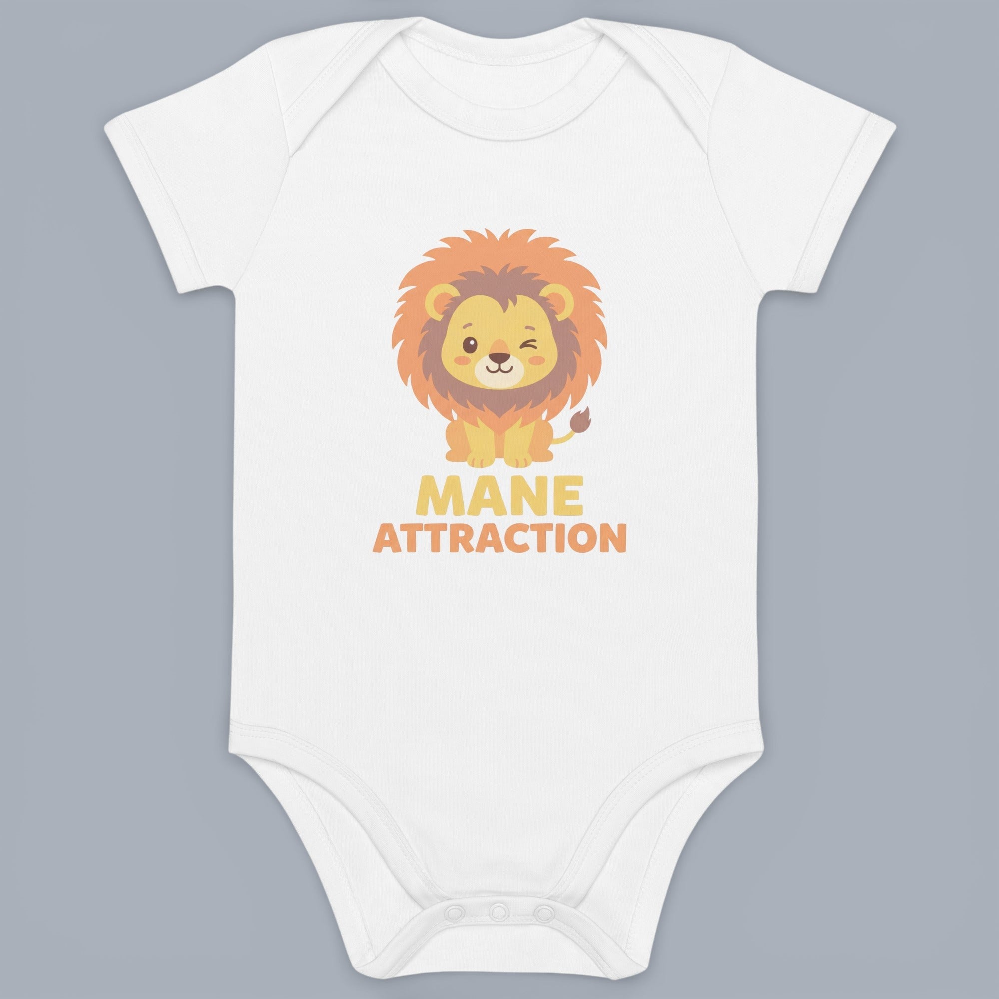 Let your little one shine in this charming bodysuit featuring an adorable, winking lion graphic that captures the essence of joy and playfulness. The vibrant colors and delightful design ensure your baby stands out in comfort and style.