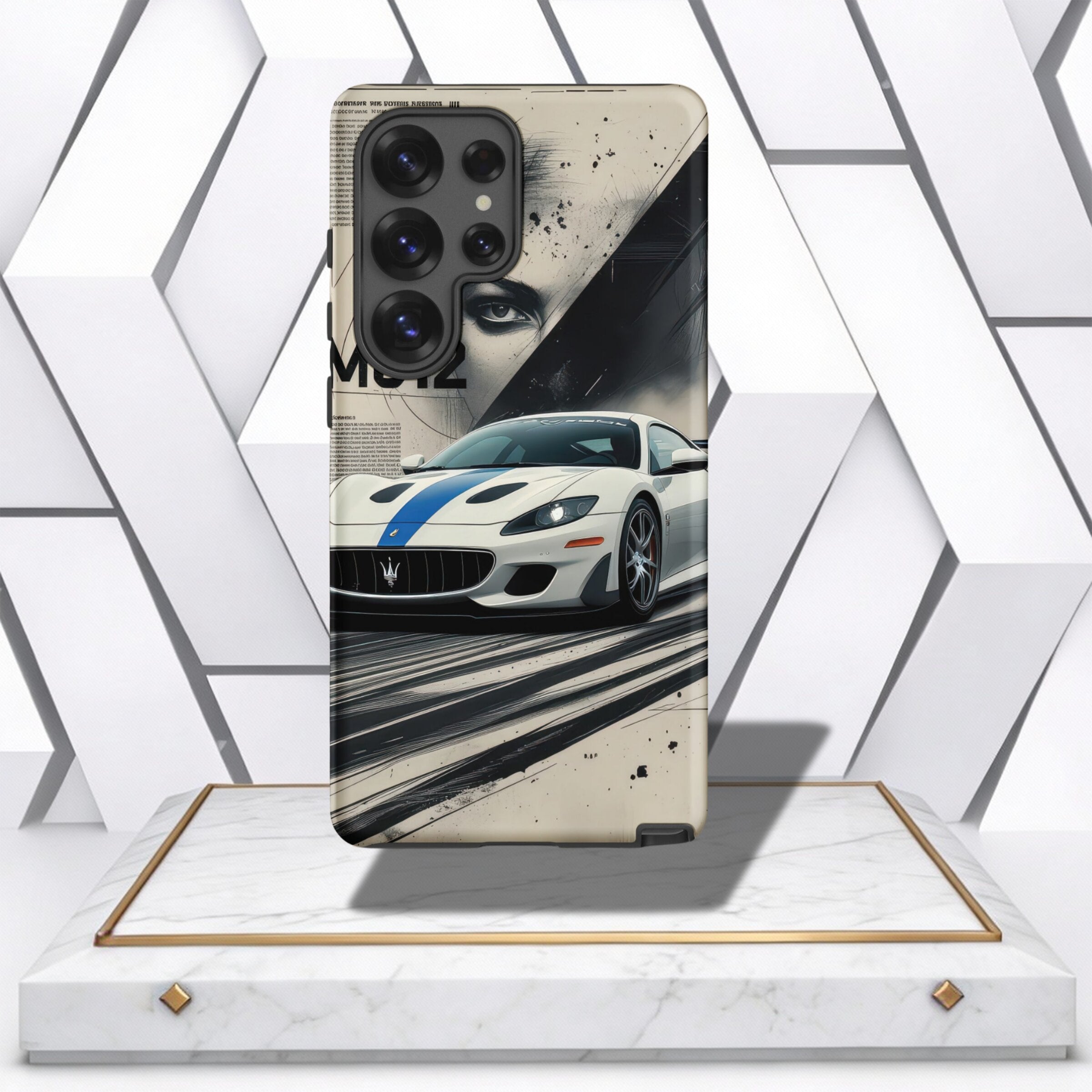Elevate your phone's style with the MC12 Speed Vision Tough Case, designed to bring the thrill of motorsport to your everyday life. Featuring a striking white Maserati MC12 with an iconic blue racing stripe, this case combines artful aesthetics with robust protection, making it perfect for automotive enthusiasts and style-savvy individuals alike.