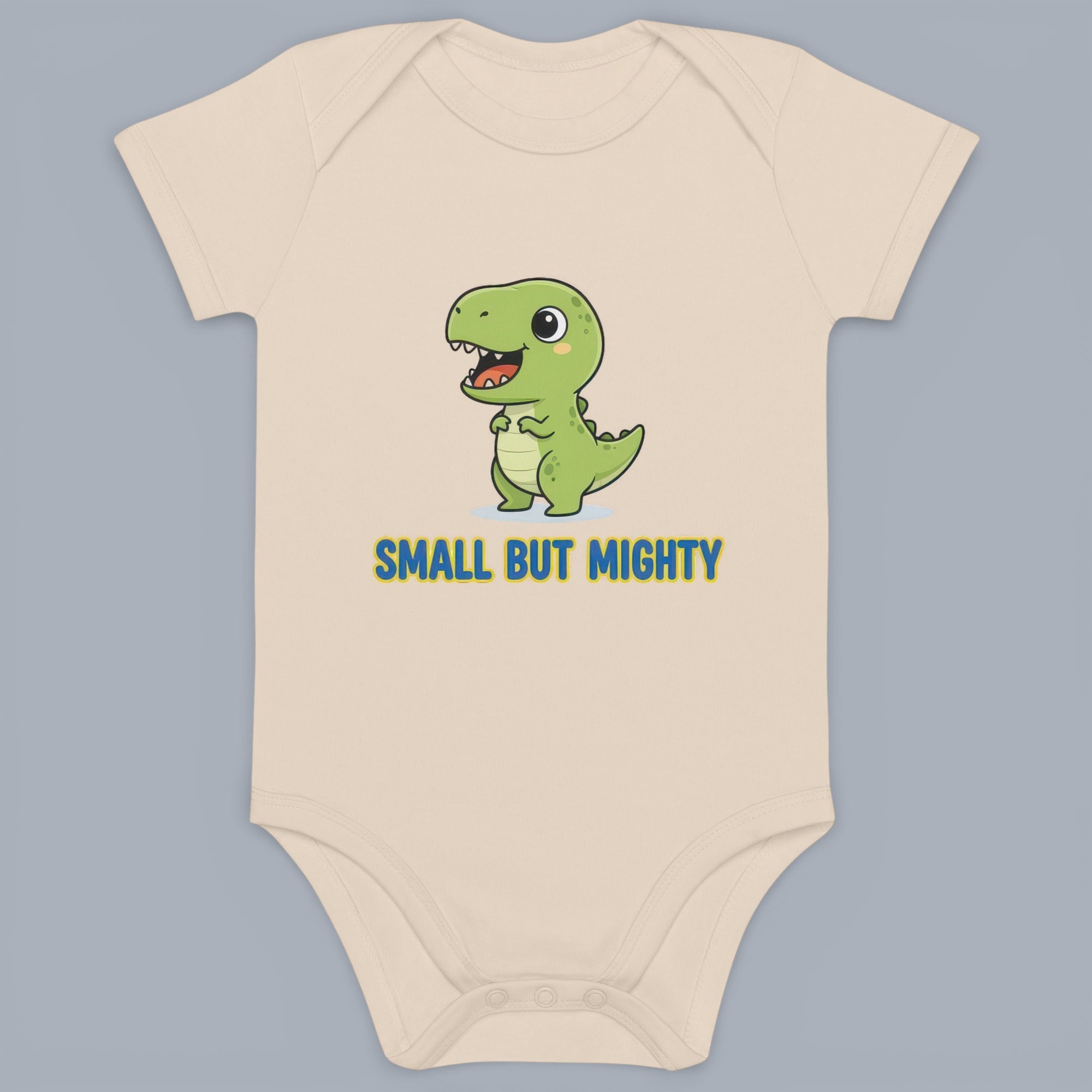 Dress your little one in playful charm with this adorable bodysuit, featuring a cheerful green dinosaur and the empowering phrase 'SMALL BUT MIGHTY'. Perfect for everyday adventures, this bodysuit combines comfort and whimsy, making it a delightful addition to any baby’s wardrobe.