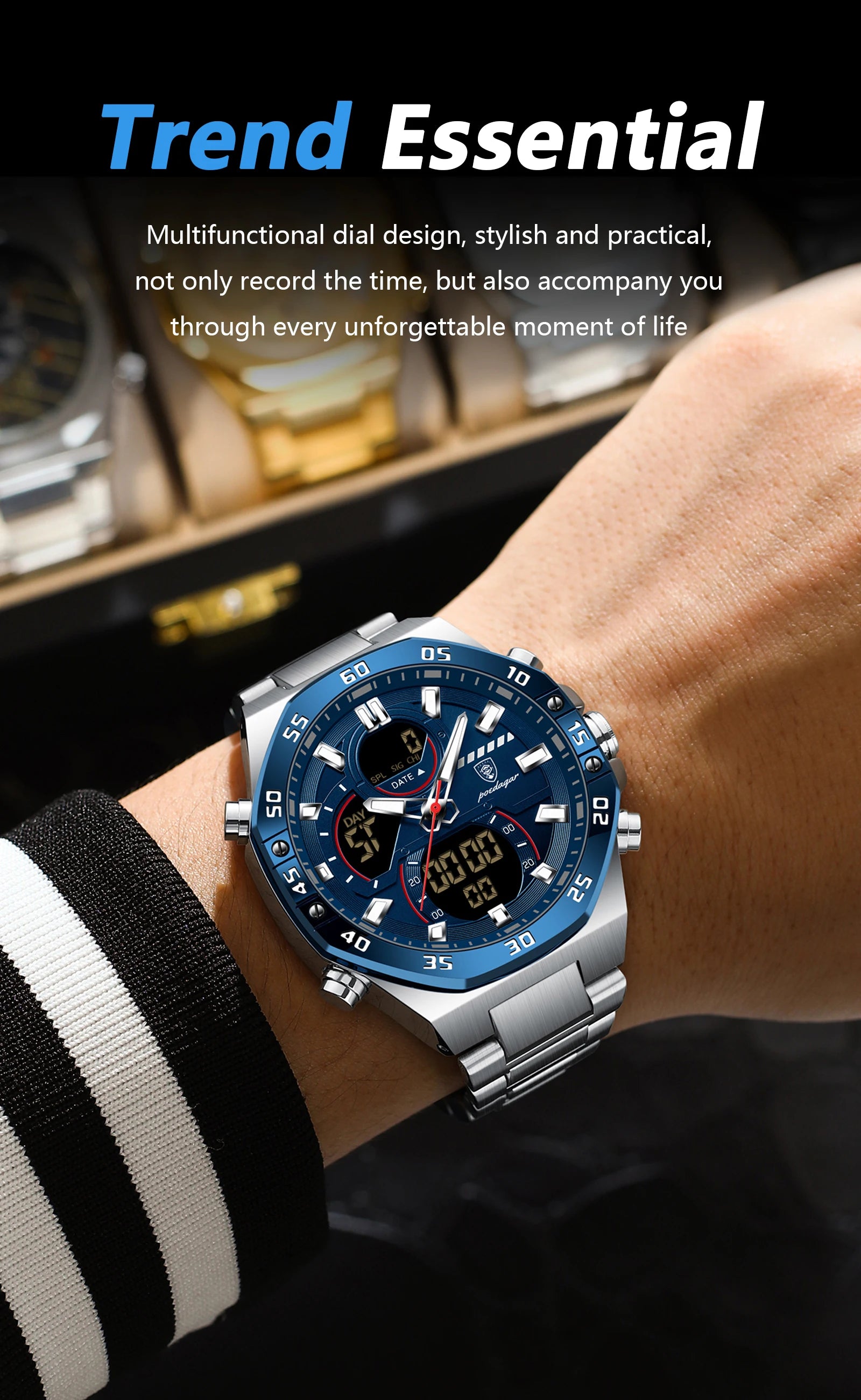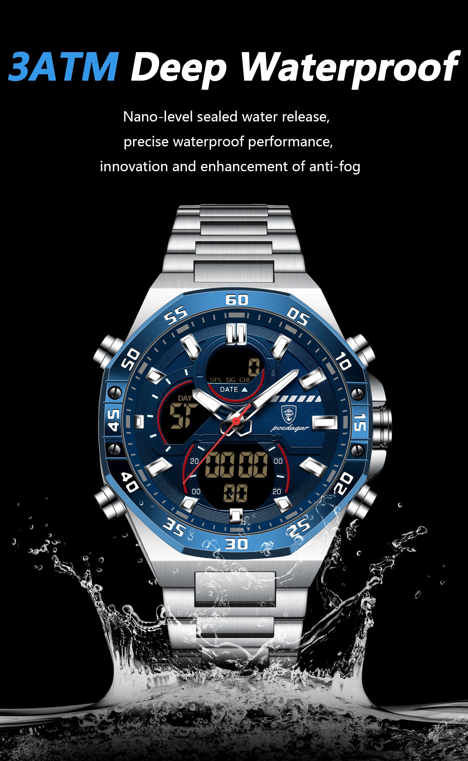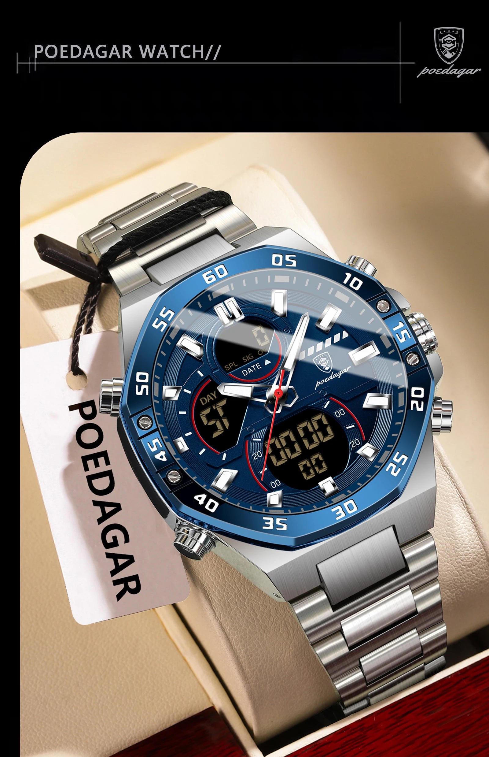 POEDAGAR Luxury Sports Man Watch Date Waterproof Luminous Chronograph