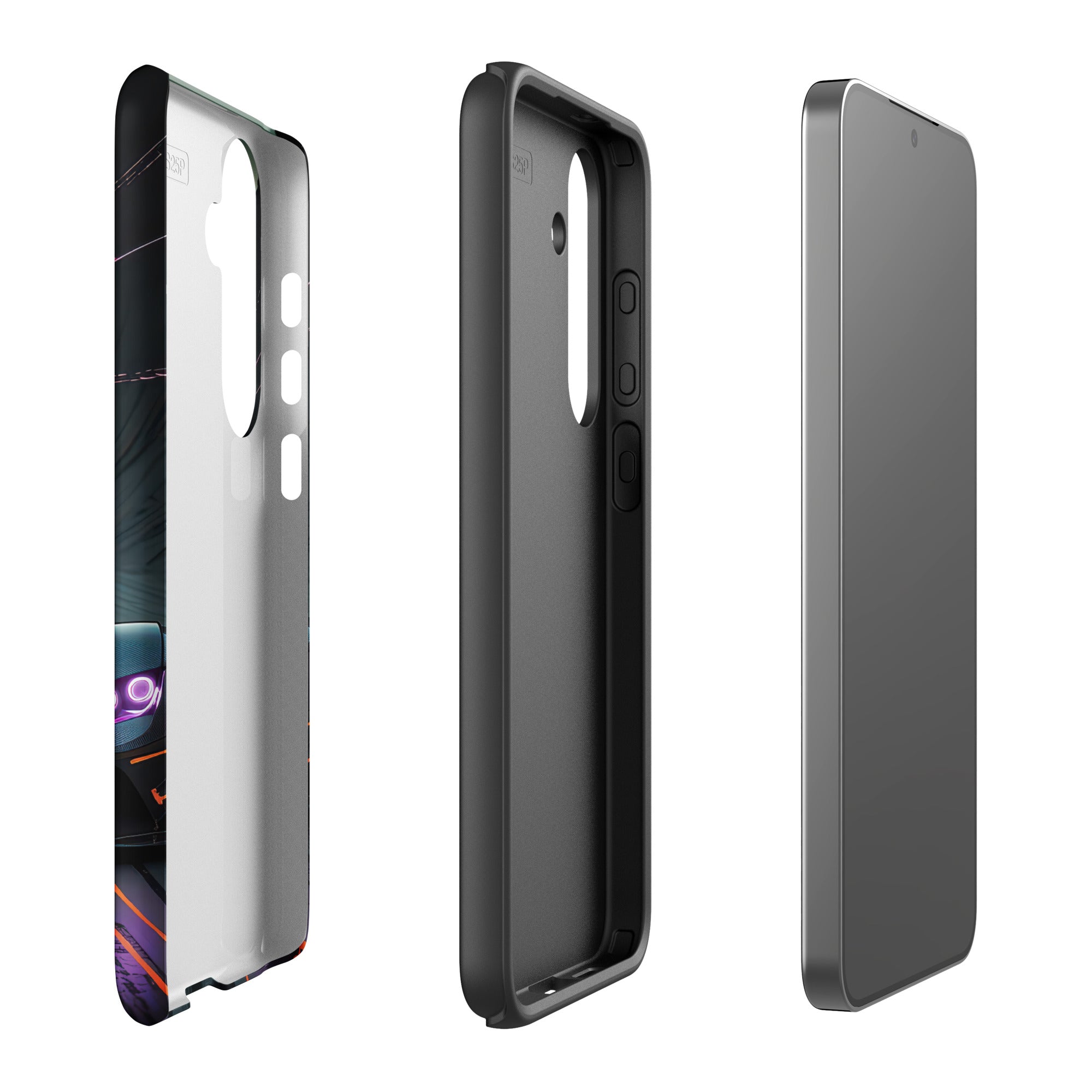 The Luminous Circuit Tough Case transforms your Samsung® into a futuristic statement with its intricate, glowing purple and blue lines against a deep background. This design, evoking digital pathways and a sense of depth, feels substantial and secure in hand. Ideal for the tech-savvy trendsetter or anyone who appreciates a modern, edgy aesthetic, it's perfect for bustling city commutes, creative work sessions, or dynamic social gatherings. Enjoy dependable dual-layer defense with this Tough Case for Samsung®.