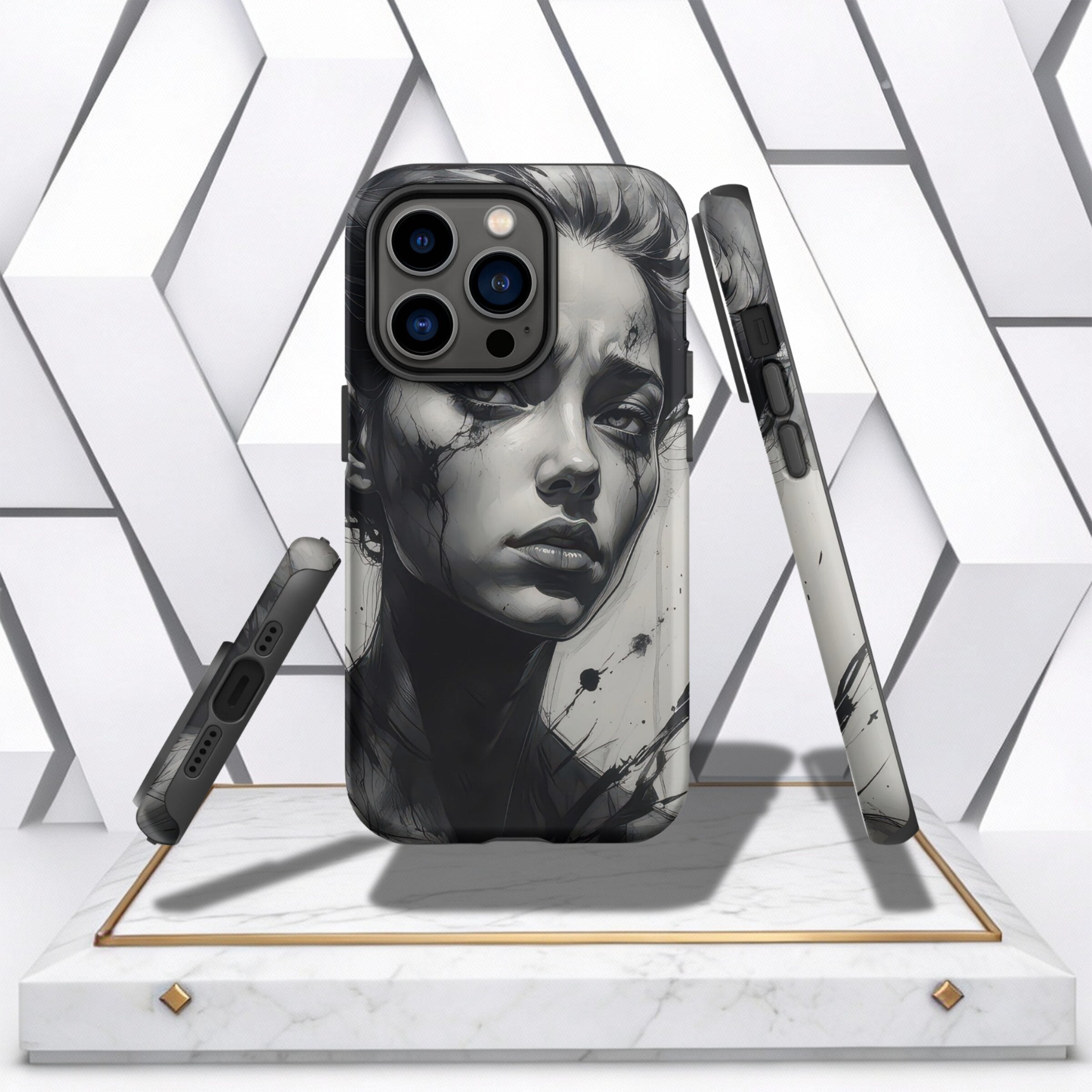 Transform your phone into a canvas of artistic expression with this striking Ink Portrait Tough Case. Featuring a dramatic black and white design, it encapsulates emotional depth and boldness, making it perfect for those who appreciate unique art while ensuring robust protection for their device.
