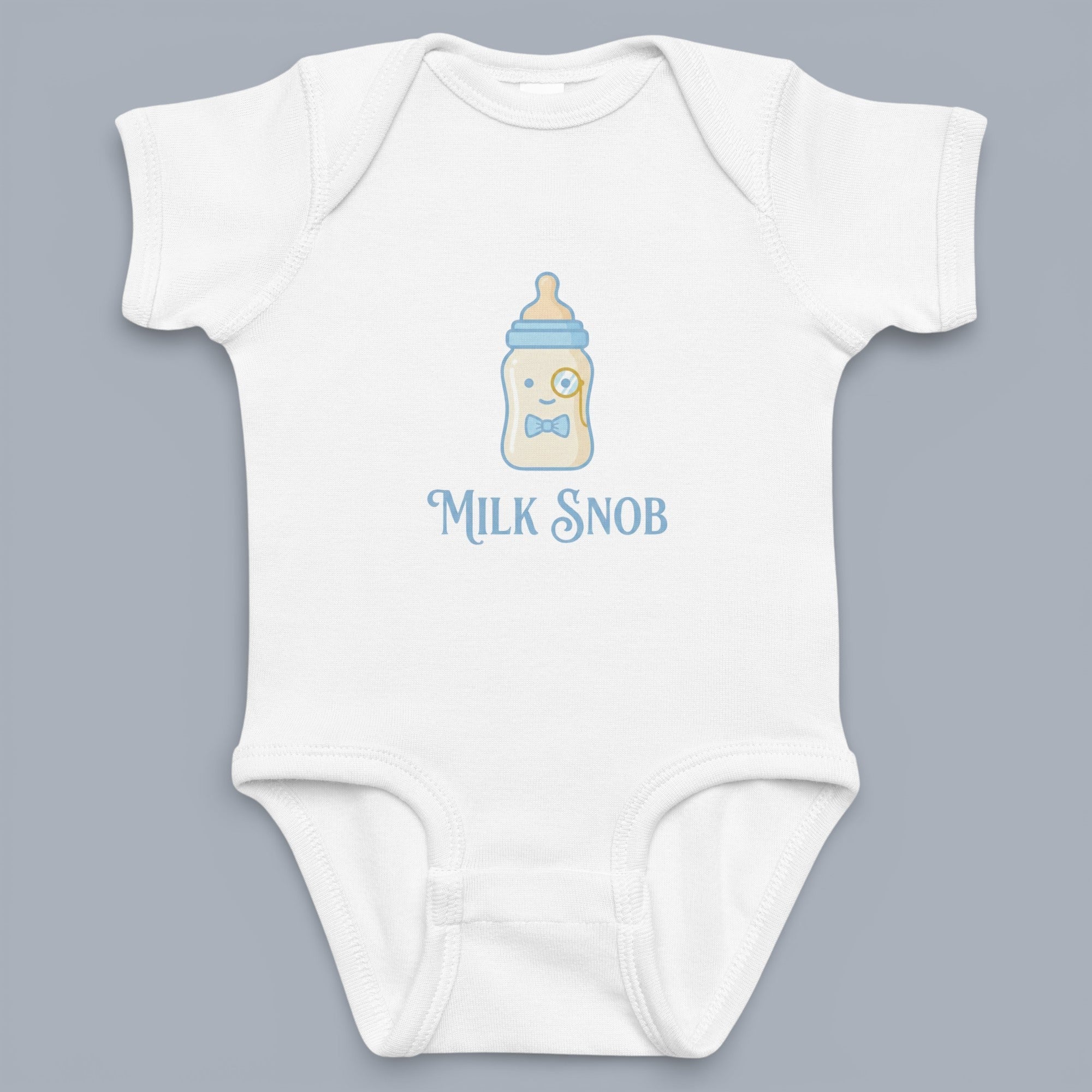 A charming essential for the smallest connoisseurs, this white bodysuit blends whimsical design with everyday comfort. Featuring a dapper "Milk Snob" bottle graphic, it adds a touch of playful personality to your baby’s daily rotation.