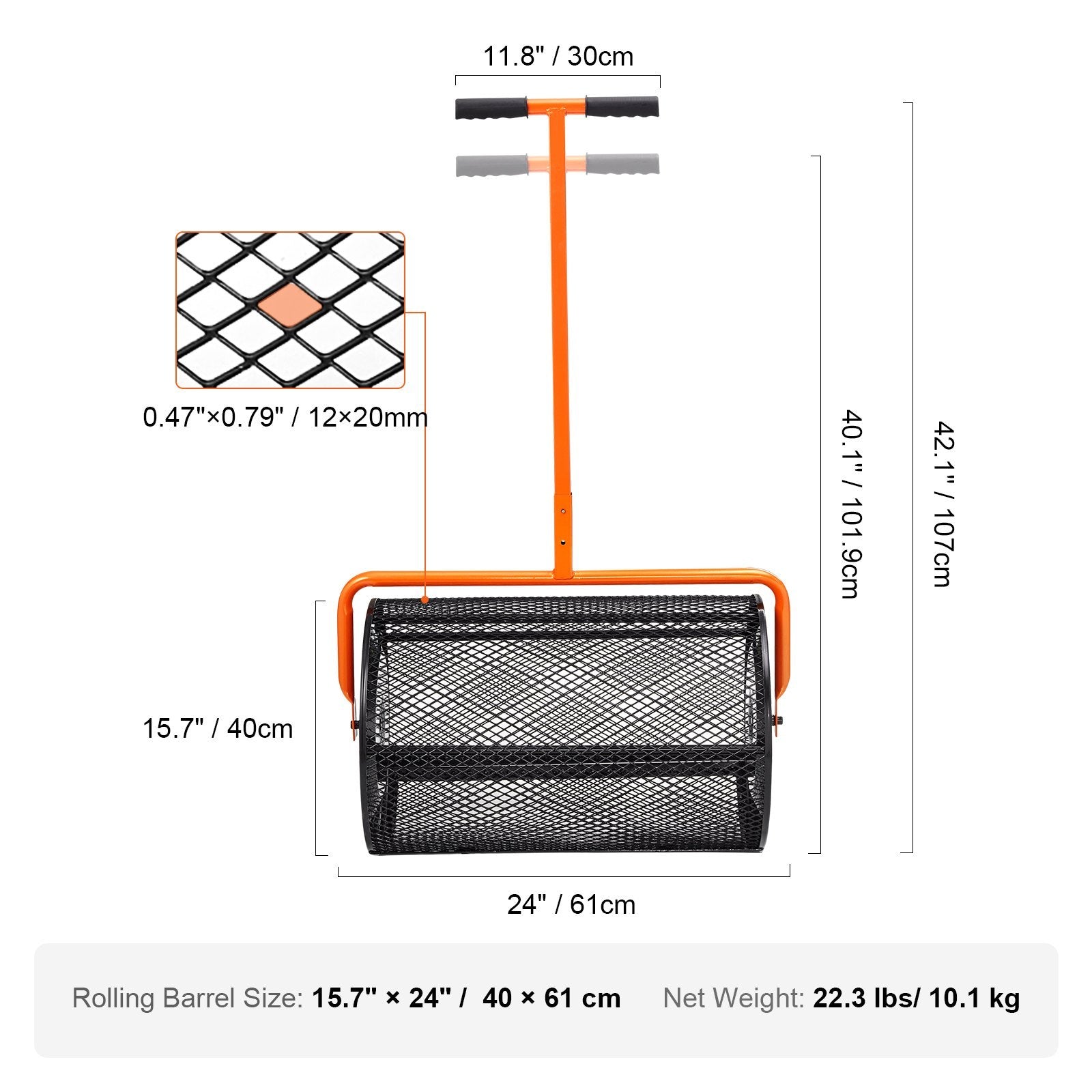 - Rolling barrel size: 15.7" × 24" (40 × 61 cm) for high-capacity spreading