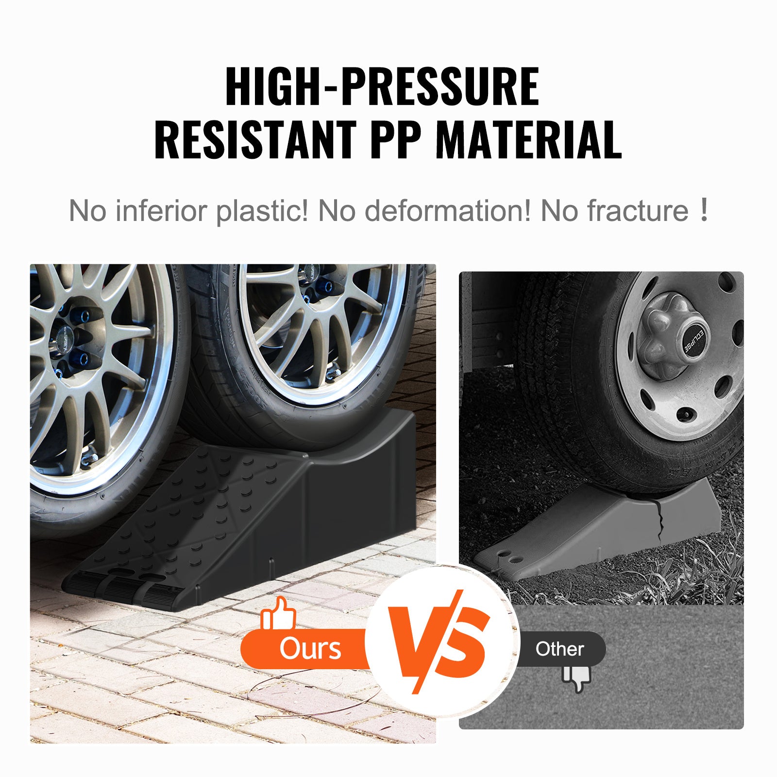 Safe, portable, and heavy-duty — the VEVOR Car Service Ramp is engineered for professionals and DIYers who need a dependable low-profile ramp for oil changes, wheel work, and undercarriage maintenance. Constructed from high-pressure resistant polypropylene (PP), the ramp offers strong load capacity, non-slip traction, and a compact, easy-to-store design.